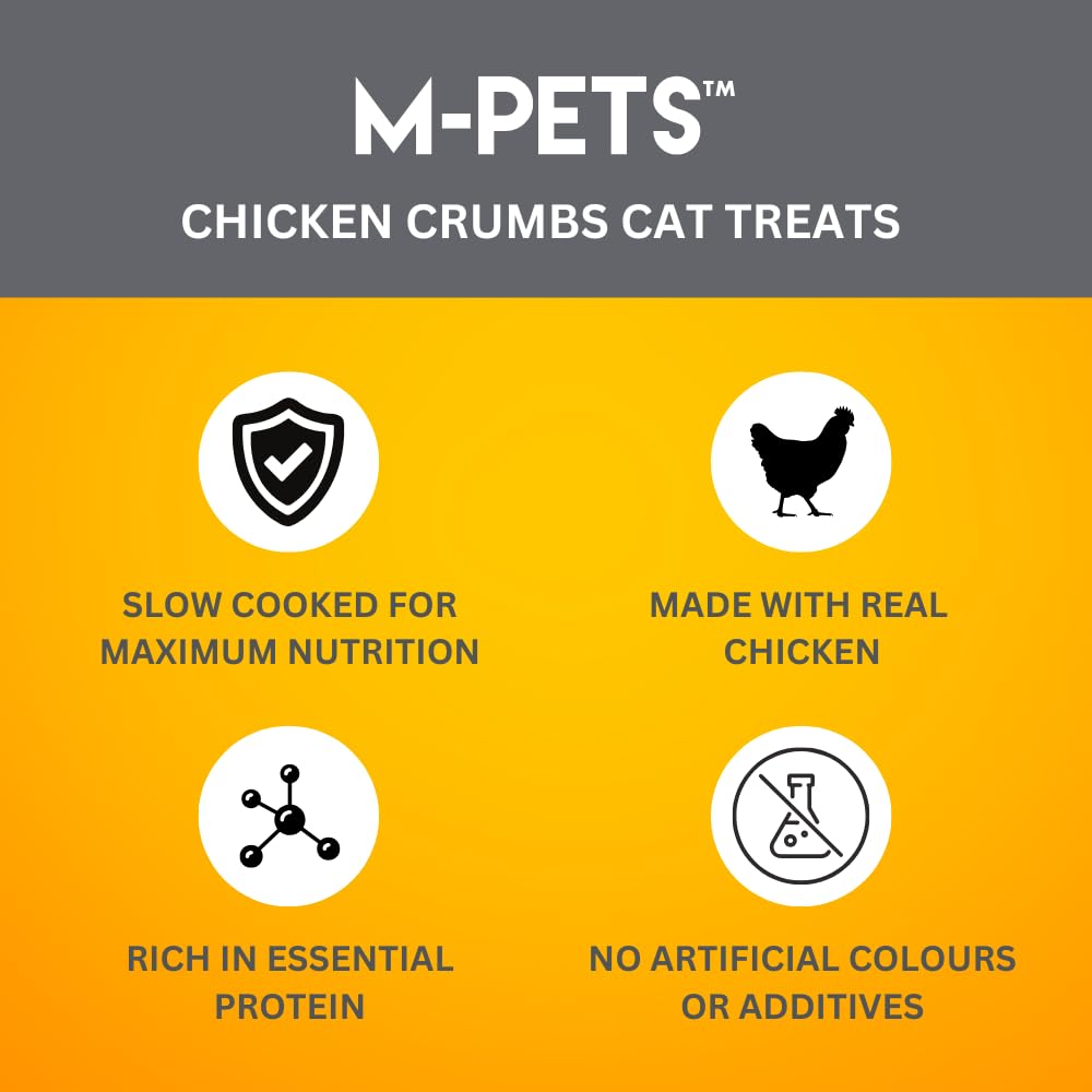 M-PETS Chicken Crumbs Cat Treats are premium cat treats made from finest chicken ingredients with high protein content and rich flavor. These bite-sized pieces provide delicious treats designed for daily feeding and training rewards.