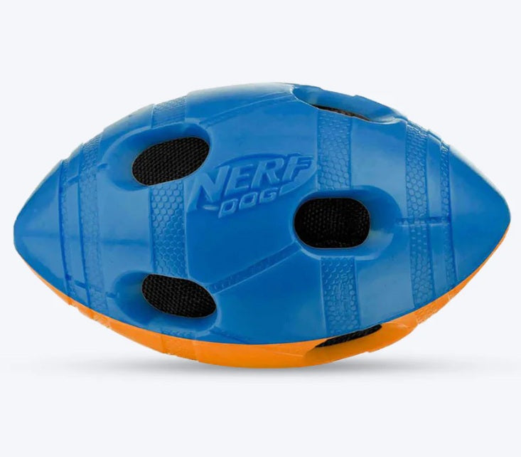 Nerf Dog Base Squeak And Crunch Football Dog Toy - Blue/Orange