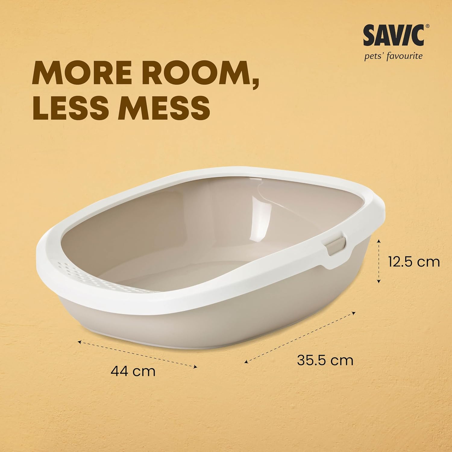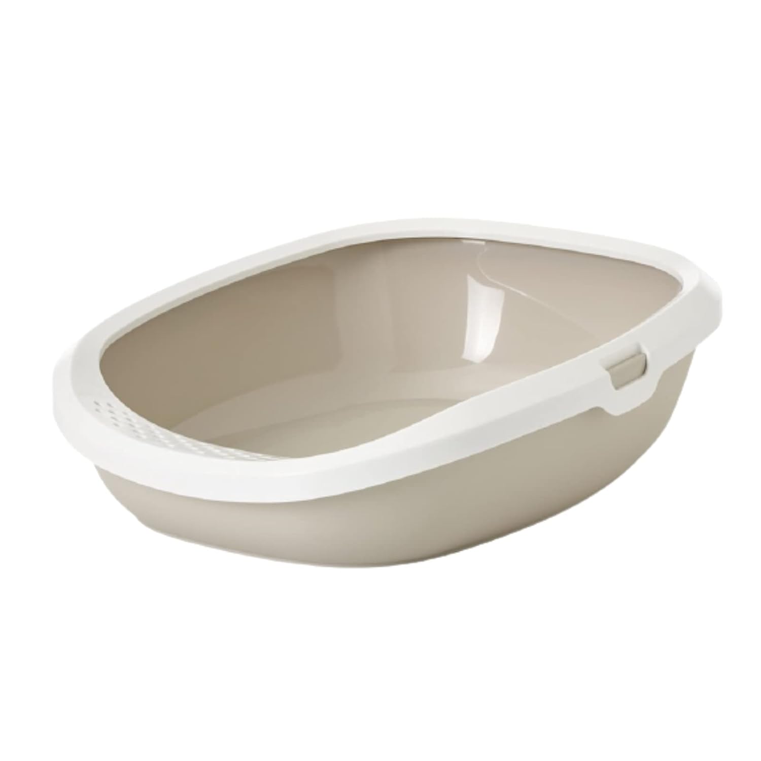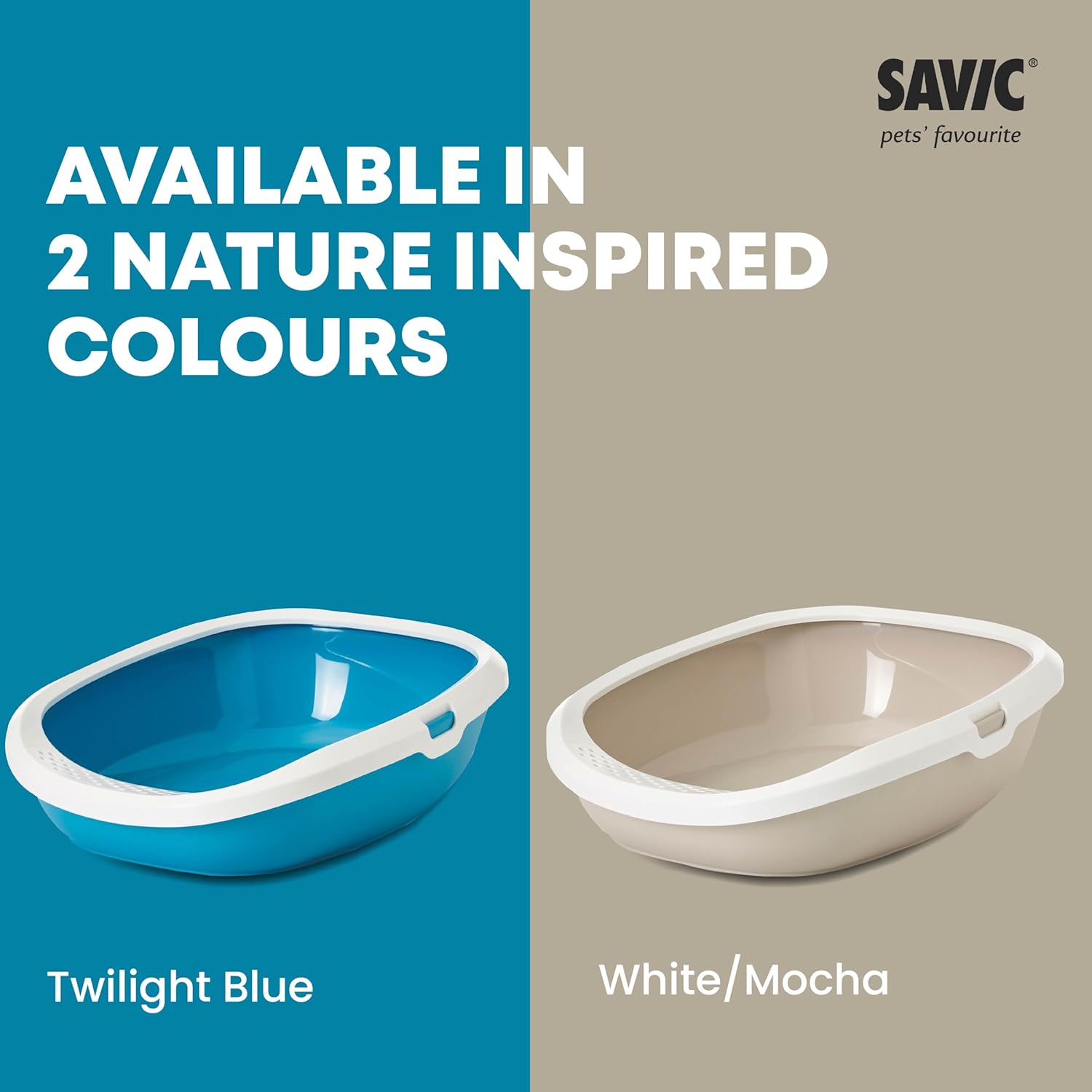 Product Features : Medium size 17-inch open-top litter tray with removable perforated rim, raised back wall, available in Mocha and Twilight Blue color options with white rim accents for optimal litter containment and easy access.