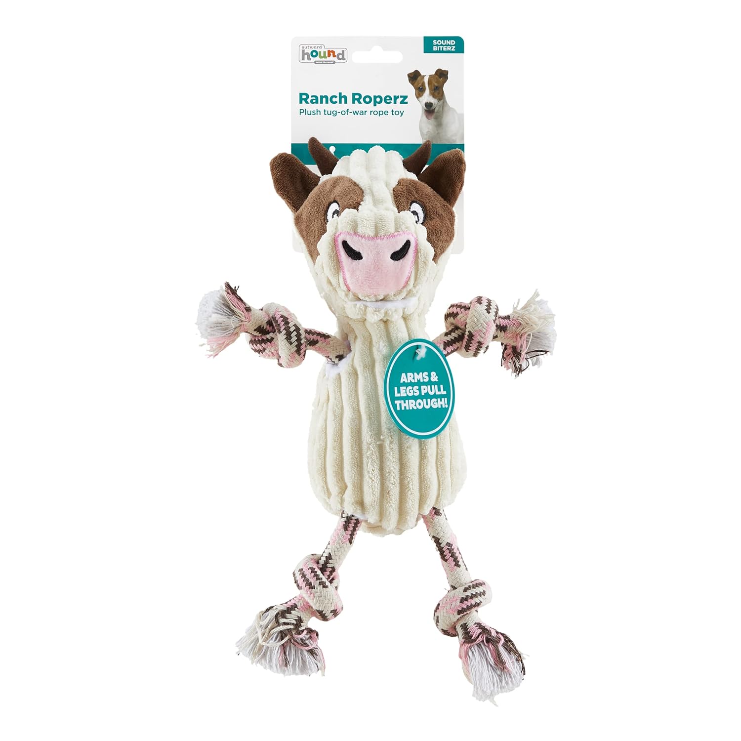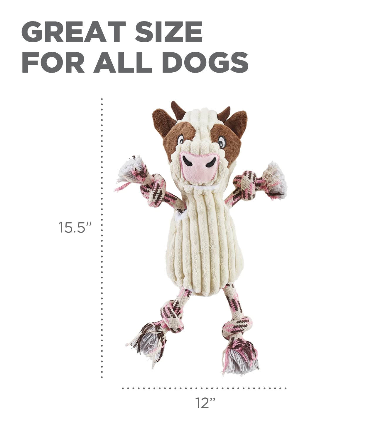 Outward Hound Ranch Roperz Cow Plush Squeaky Dog Toy - White