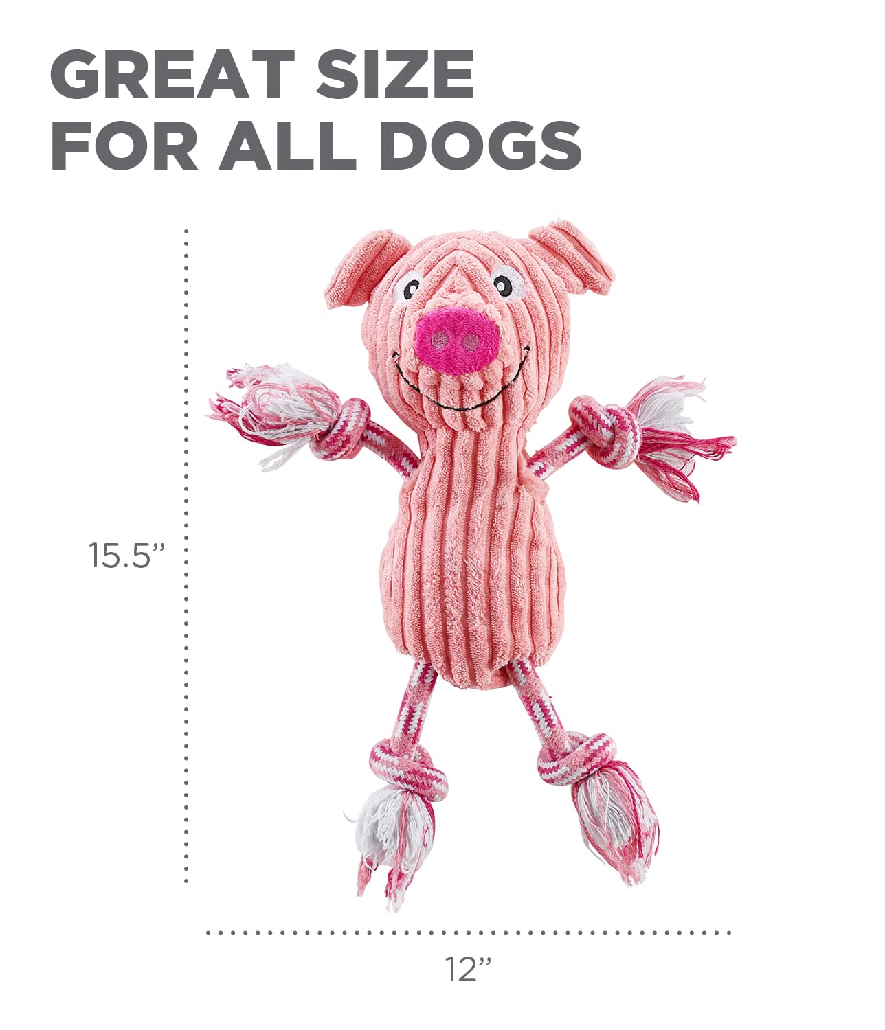 Outward Hound Ranch Roperz Pig Plush Squeaky Dog Toy - Pink
