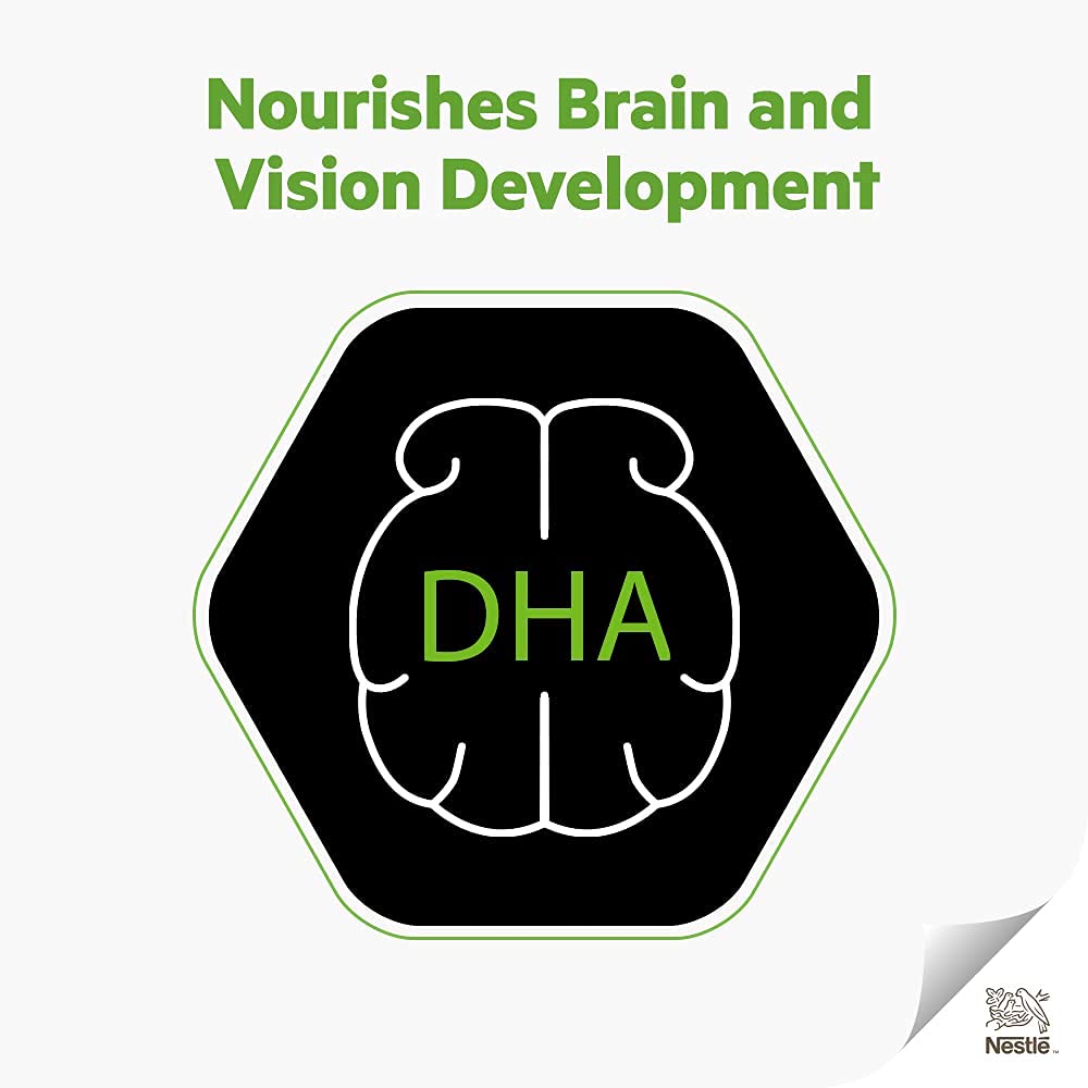 - It also has DHA from omega-rich fish oil that helps nourish brain and vision development.