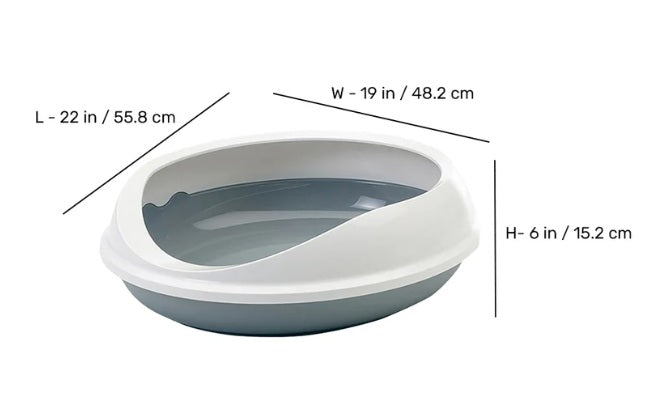 Savic Figaro Oval Cat Litter Tray+Rim 22 Inch is a Premium oval-shaped cat litter tray with removable rim system measuring 22 x 19 x 6 inches. High rim keeps litter inside the tray maintaining neat surroundings.
