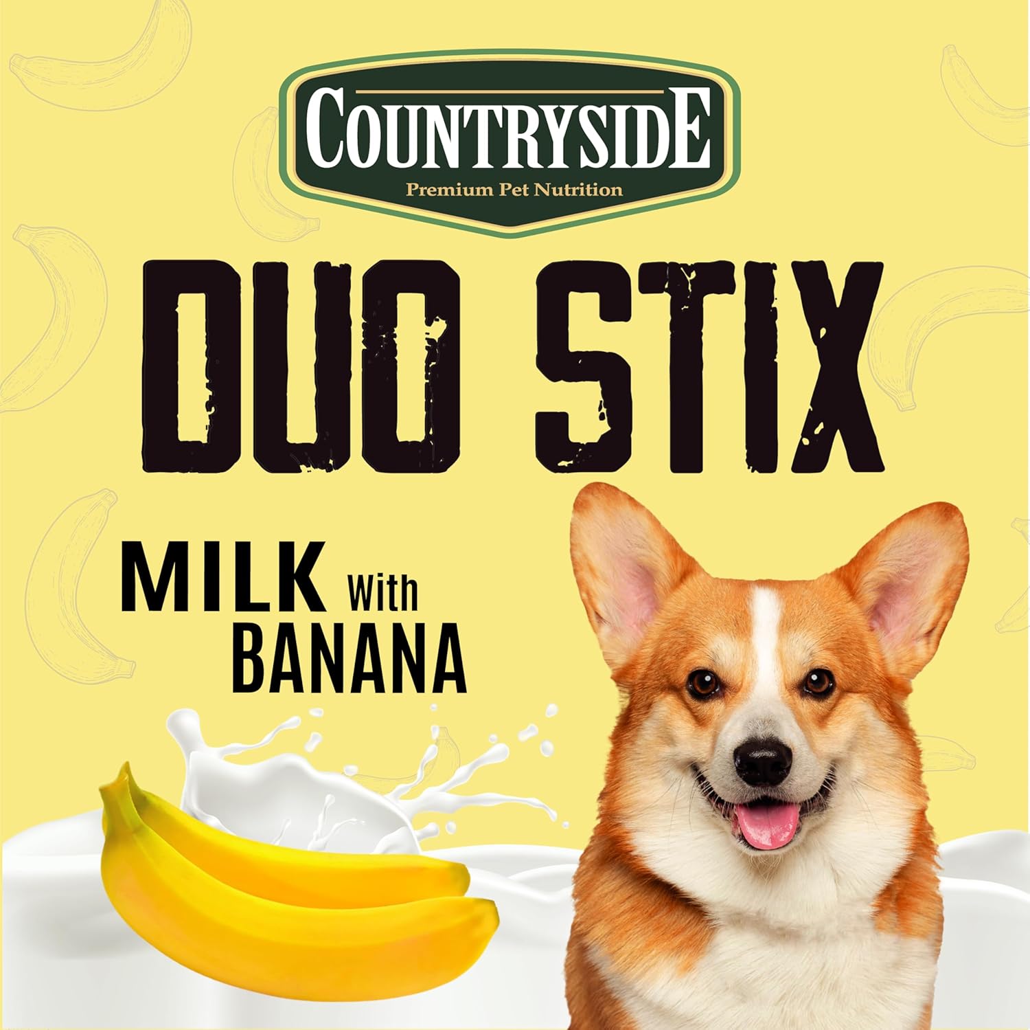 Taiyo Countryside Milk with Banana Duo Stix Dog Treats is a Premium milk and banana stick treat with added inulin for digestive support. Made with real milk powder and natural banana flavor in convenient stick format for all dog breeds.