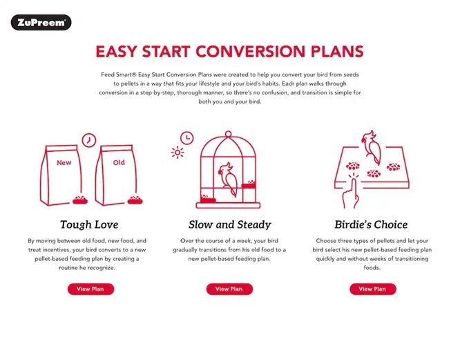 Feeding Guidelines: Offer as primary diet, replacing 75-80% of seeds. Provide fresh portions daily and remove uneaten food after 24 hours. Supplement with fresh fruits and vegetables.