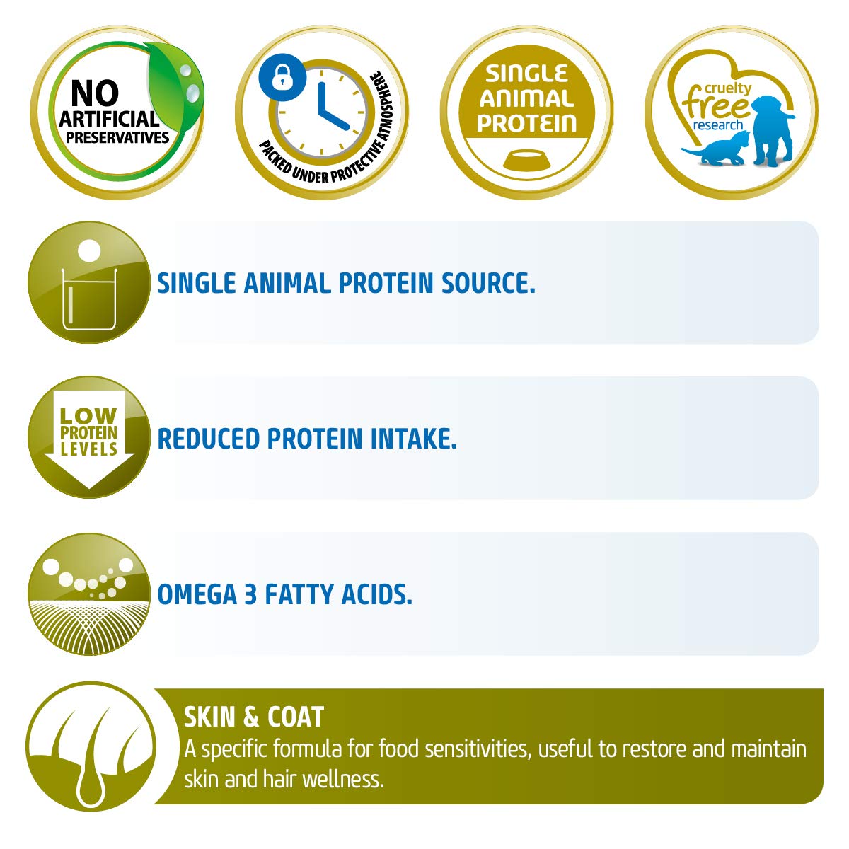 A specific formula for food sensitivities, useful to restore and maintain skin and hair wellness. N&D Quinoa Skin & Coat is a complete dietetic food for dogs, suggested for the reduction of ingredient and nutrient intolerances. Buy dog food from ShakeHands, the leading online pet shop.
