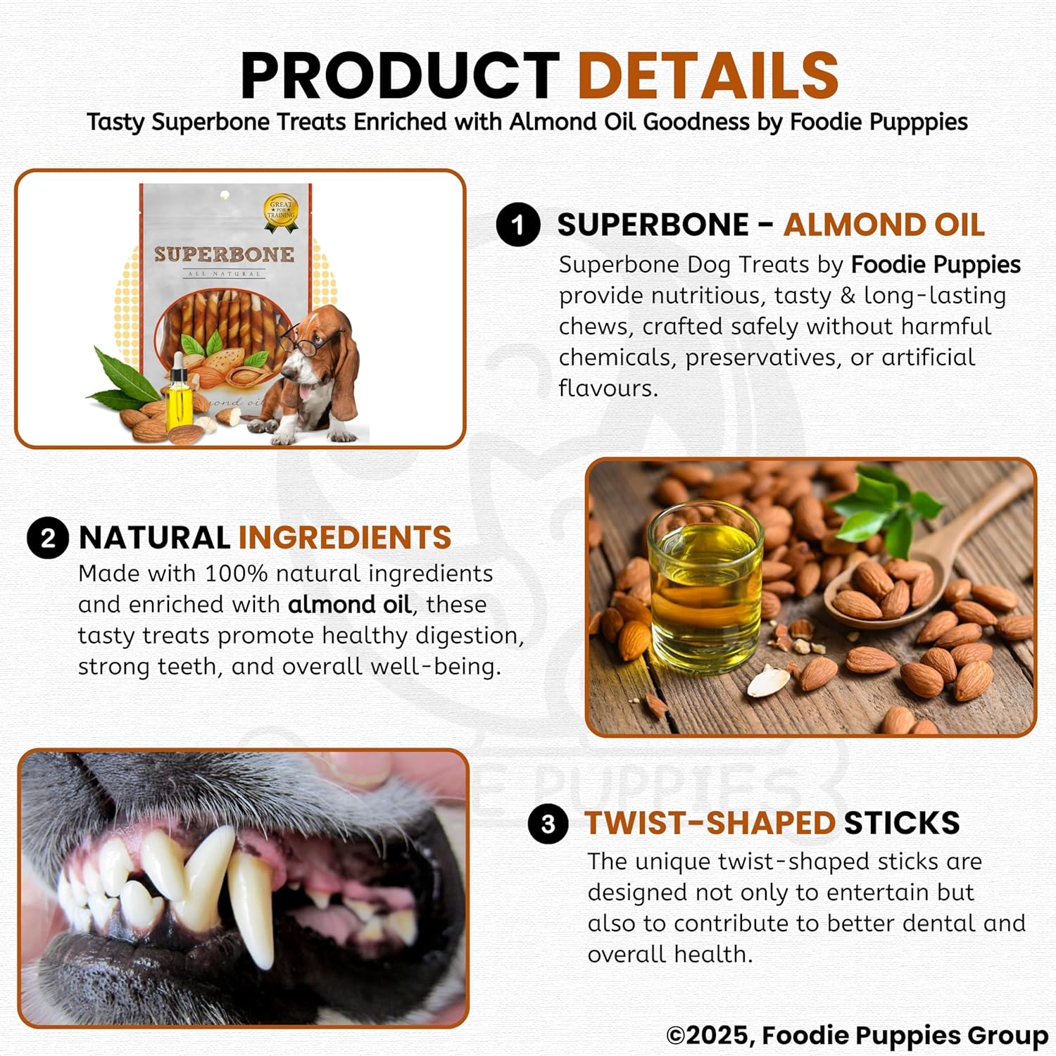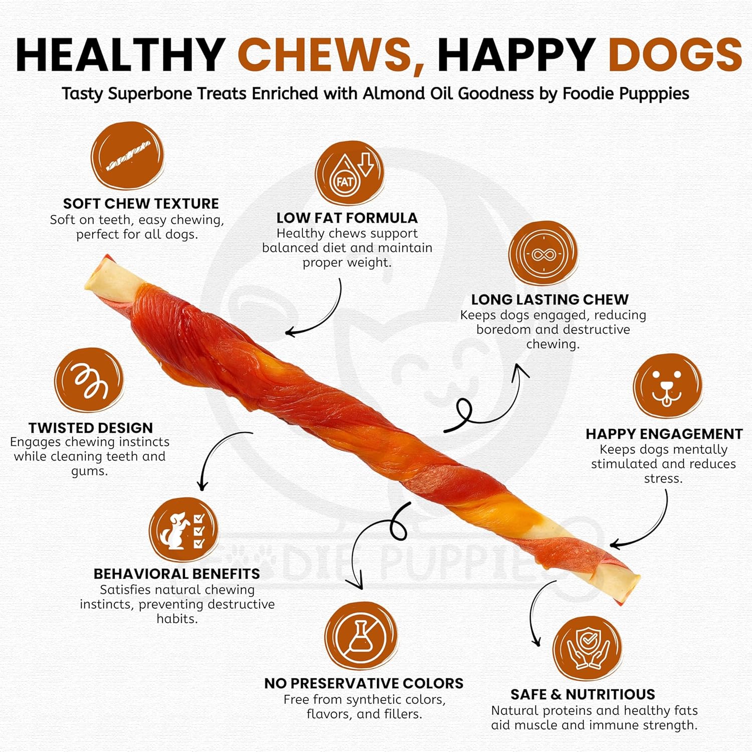 Dogaholic SuperBone All Natural Dog Treats - Almond Oil Flavor are premium all-natural stick treats featuring real chicken and nutty almond oil essence for irresistible taste that dogs crave.
