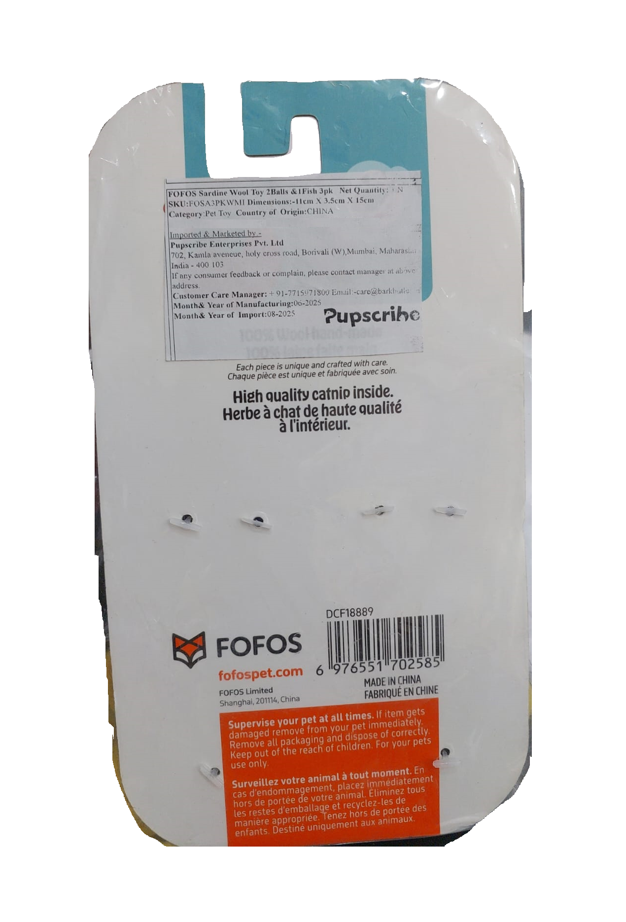 - Product Name: Fofos Sardines Wool Toy For Cats – 2 Balls & 1 Fish