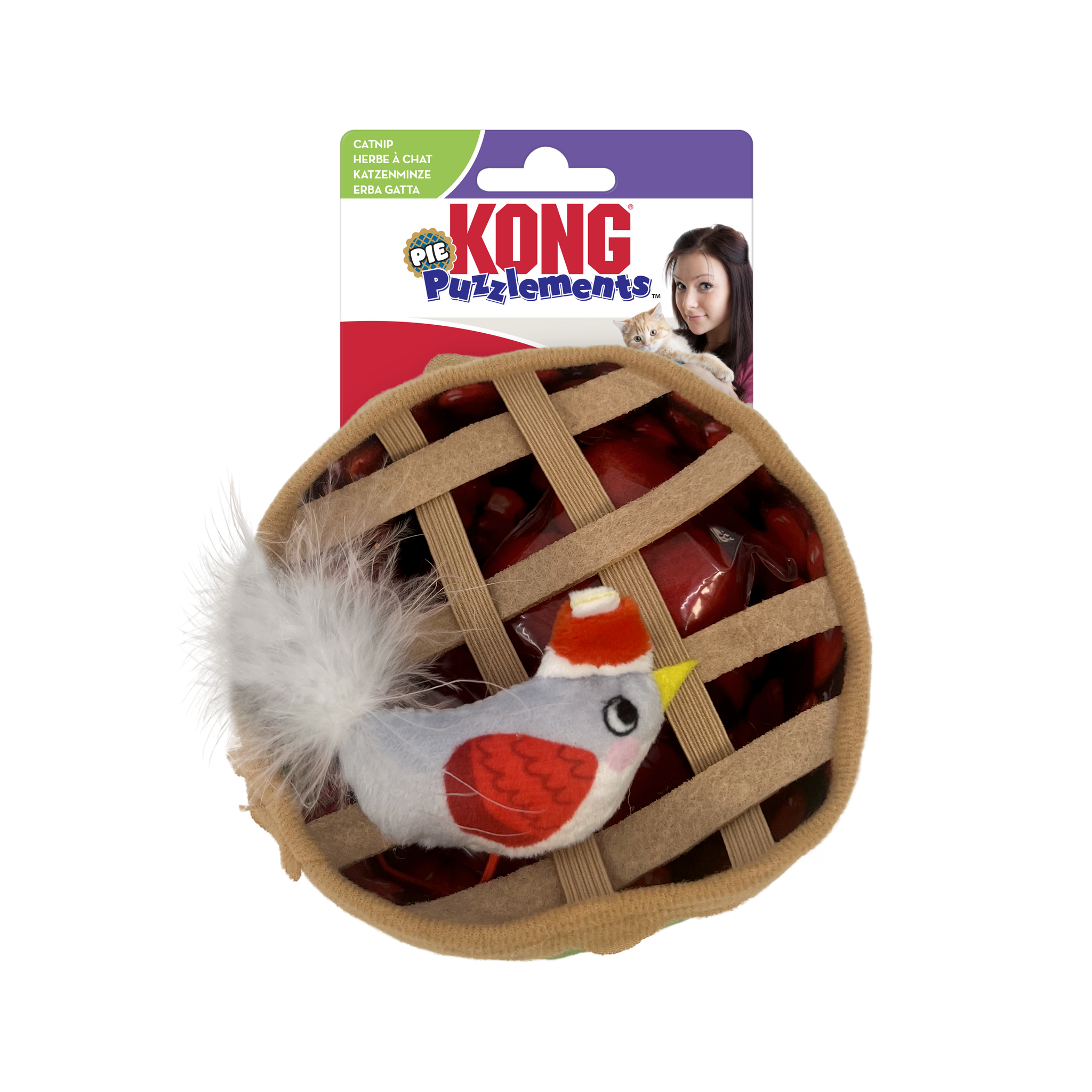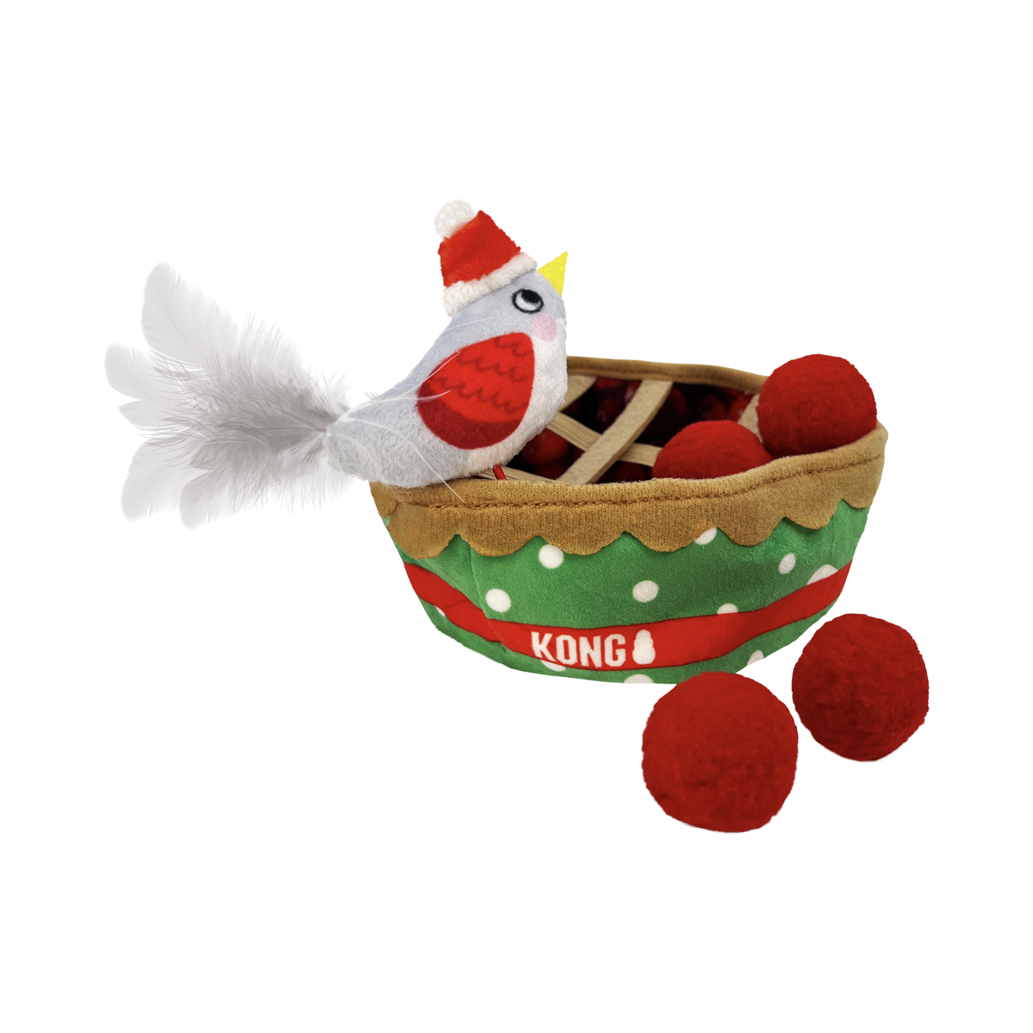 Featuring a soft plush pie filled with removable toy pieces, this interactive set keeps cats engaged through batting, pouncing, and exploring. The included plush bird toy with feathers and festive detailing adds extra excitement, while the lightweight red balls inside encourage swatting and chasing fun. Infused with premium KONG catnip, this toy enhances playtime and keeps your feline friend entertained longer.