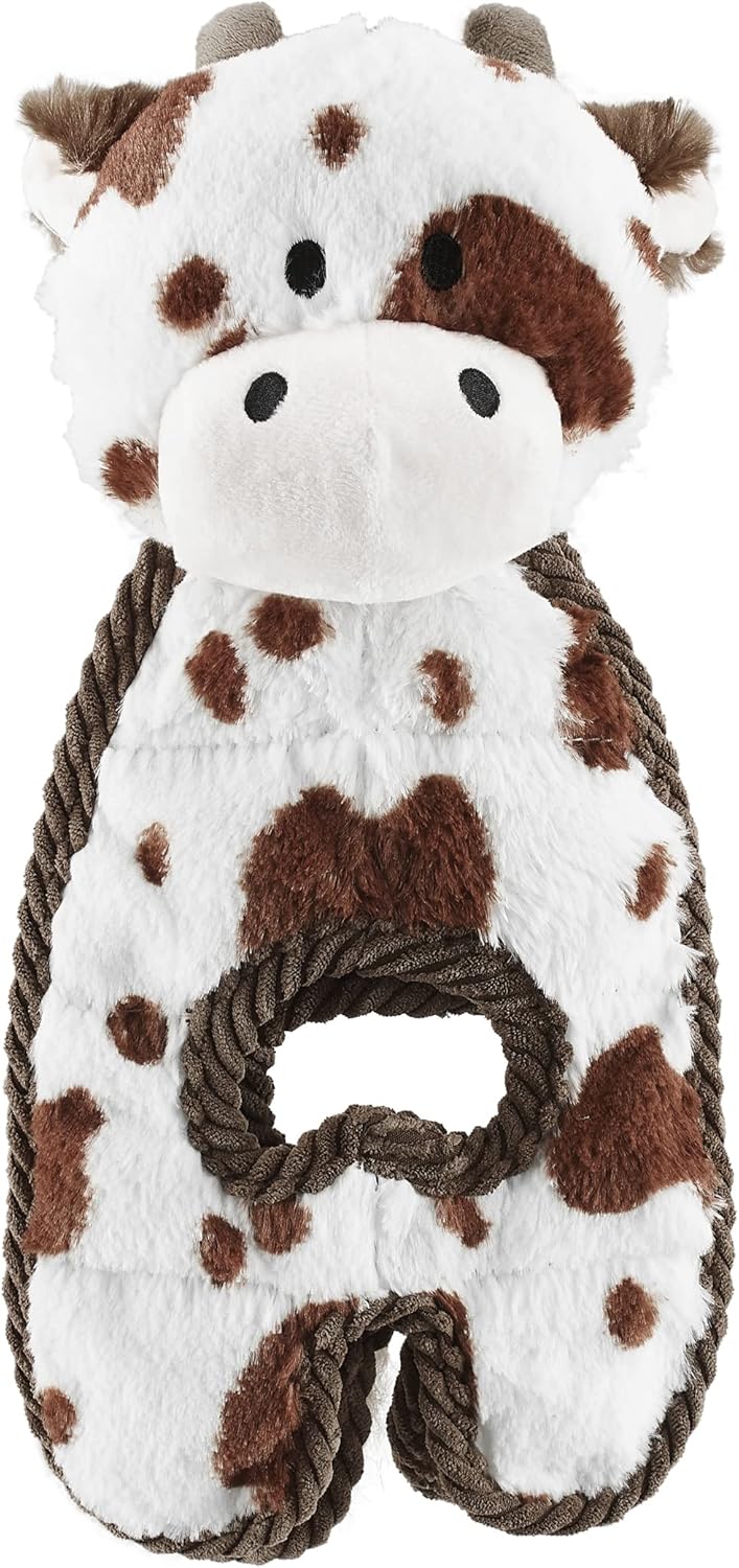 Outward Hound Charming Pet Cuddle Tugs Cow Plush Squeaky Dog Toy | Durable Tug, Crinkle & Squeak Toy for Dogs