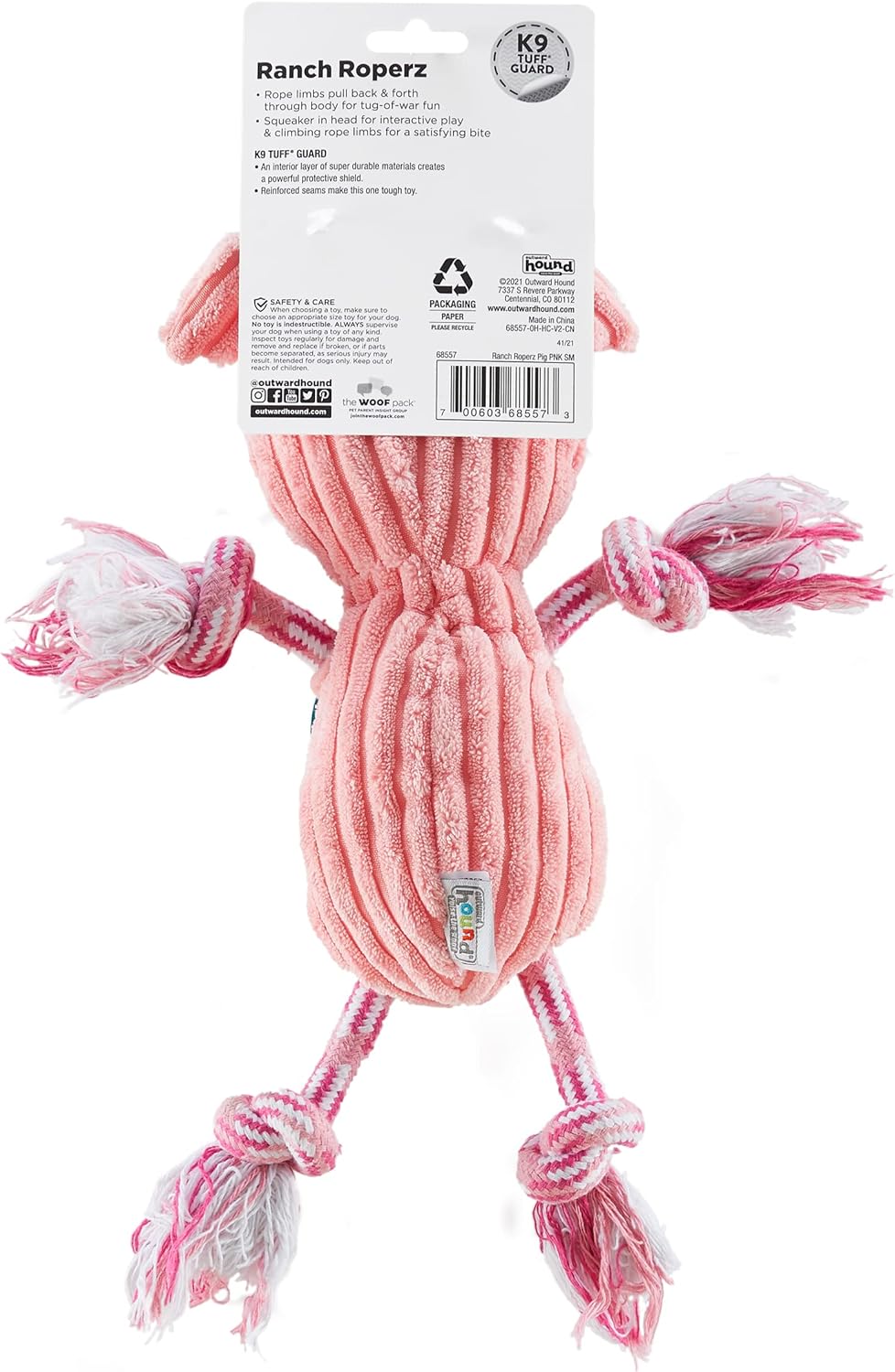 The Outward Hound Ranch Roperz Pig Toy brings adorable farmyard fun with a durable twist! Designed with a soft corduroy plush body and tough rope limbs, this pink pig toy is built for tugging, tossing, shaking, and squeaky play. Whether your dog loves interactive games or solo chewing sessions, this toy delivers entertainment that lasts.