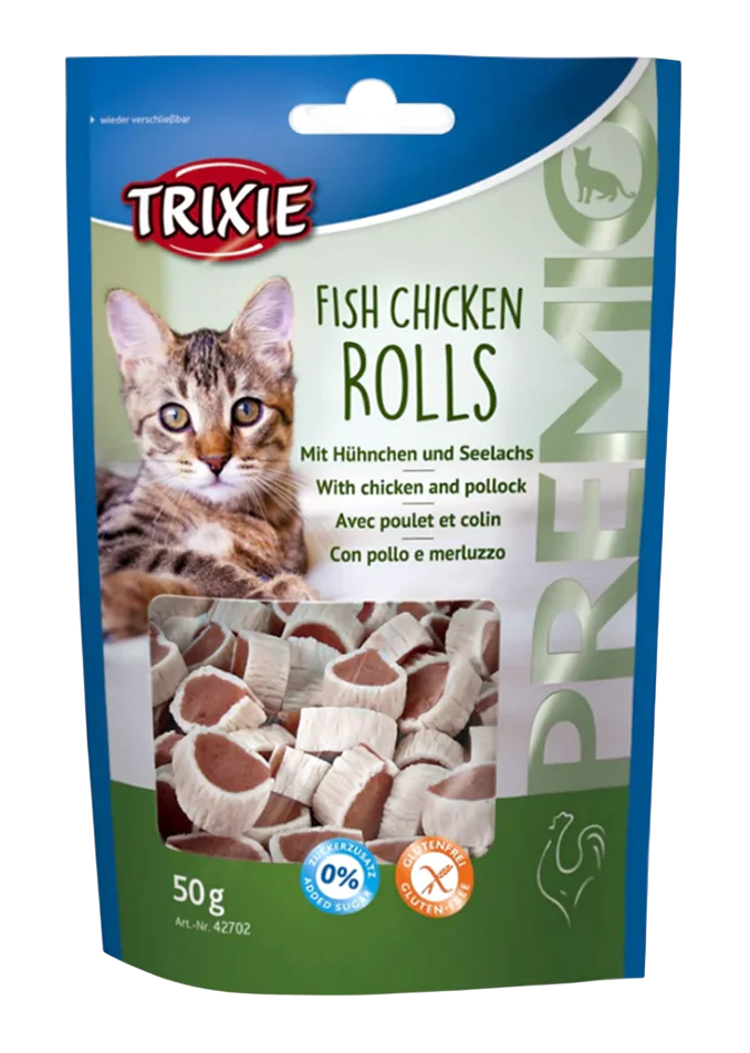 The Trixie Premio Fish Chicken Rolls combine the goodness of real meat with the love your cat deserves — perfect for rewarding, training, or simply bonding moments.