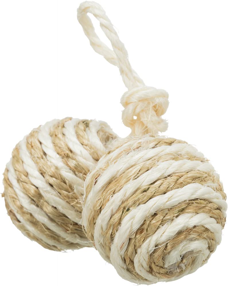 Trixie Two Balls on Sisal Rope Cat Toy is perfect for your frisky feline. It is a toy which consists of two balls attached by a rope. All made from Sisal. Your cat will be busy for hours playing with this toy. It will also bring out the hunting instinct in your cat.