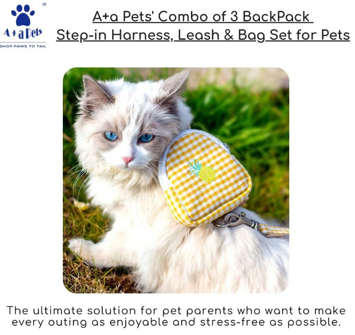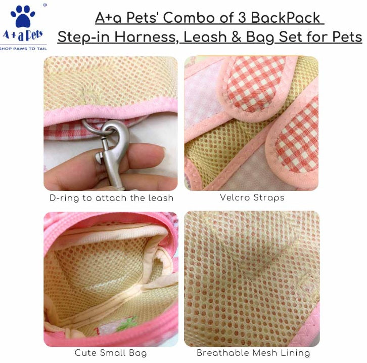 A+A Pets 3-in-1 Harness Set for Dogs & Cats | Step-In Harness, Leash & Backpack Bag | Breathable & Comfortable