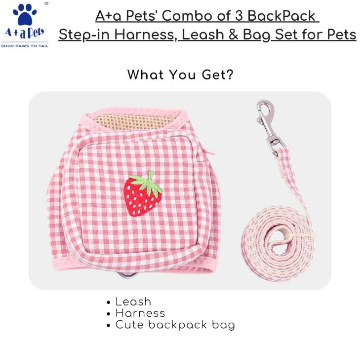 Make every walk stylish, safe, and convenient with the A+A Pets 3-in-1 Harness Set for Dogs & Cats. This all-in-one set includes a breathable step-in harness, a strong matching leash, and a cute mini backpack bag attached to the harness. Designed for comfort and functionality, it is perfect for both outdoor adventures and everyday use.
