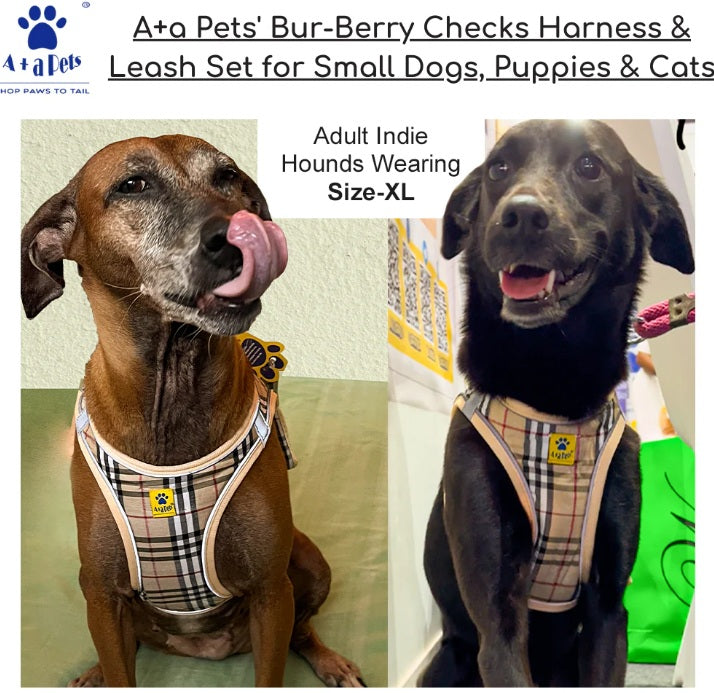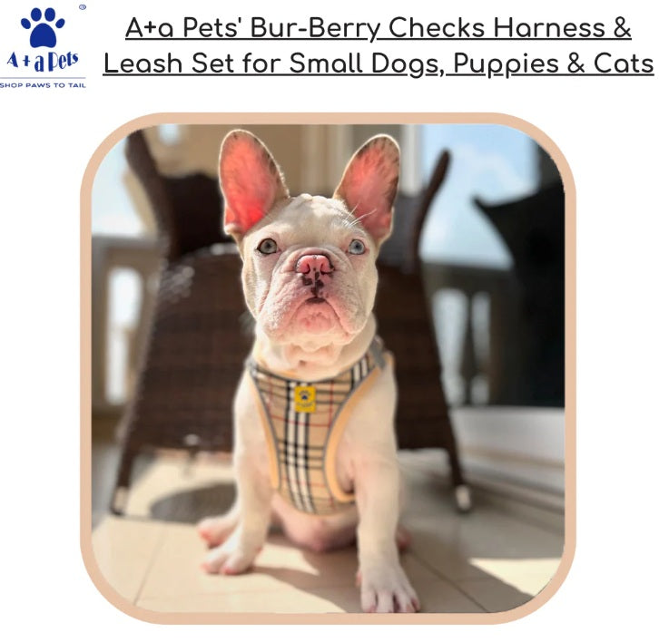 The A+A Pets Bur-Berry Checks Harness delivers a perfect blend of style, comfort, and security. Its soft padded design prevents choking, while the adjustable fit ensures comfort during walks. With its fashion-forward look and pet-friendly construction, this harness is a favorite among cat and small dog owners who want both function and style in one set.