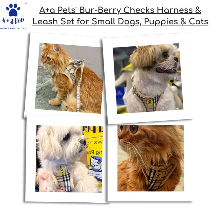 A+A Pets Bur-Berry Checks Harness & Leash Set for Cats & Small Dogs | Soft Padded Vest Harness | Adjustable & Comfortable