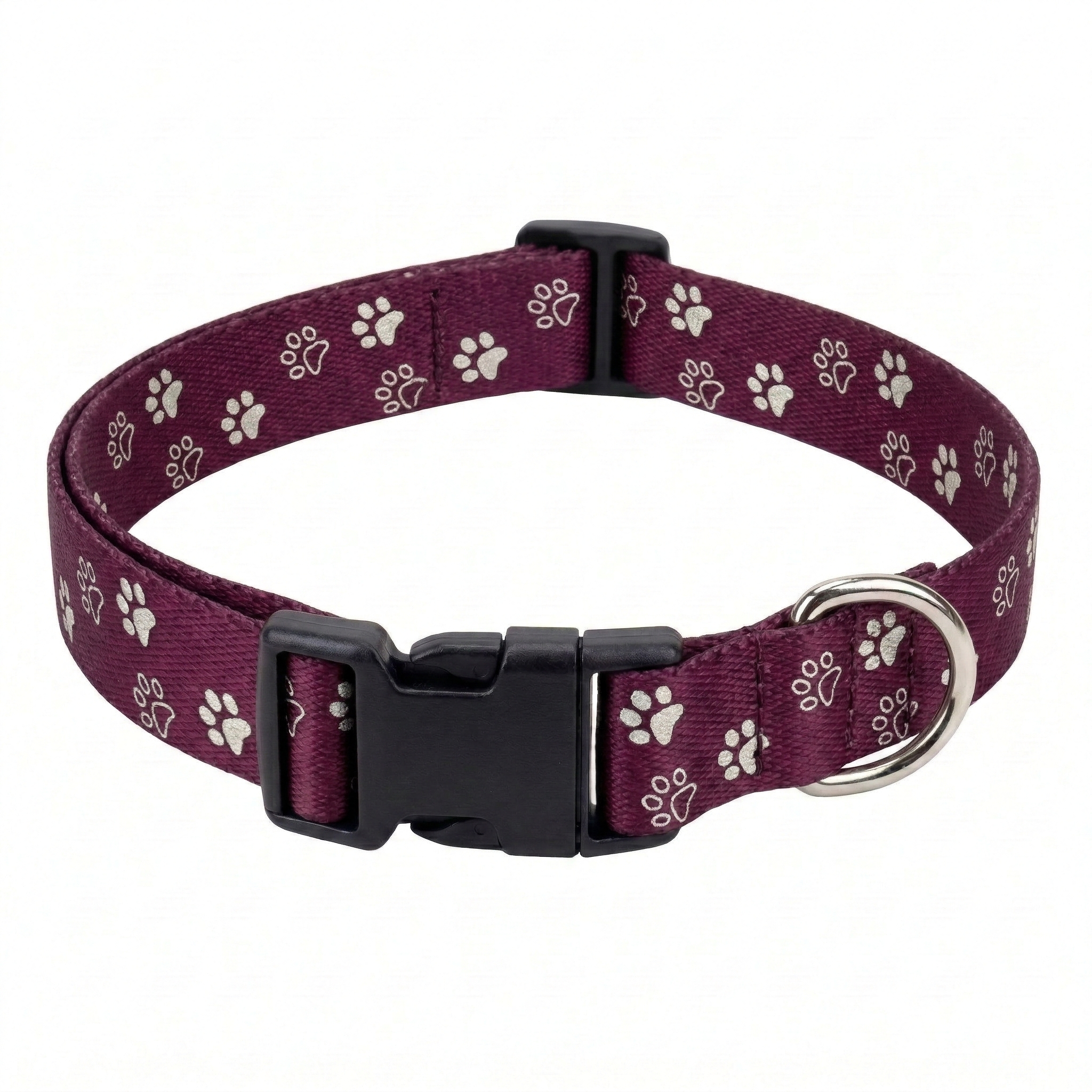 Kennel Adjustable Printed Nylon Dog Collar with Click Buckle – Purple Paws Print
