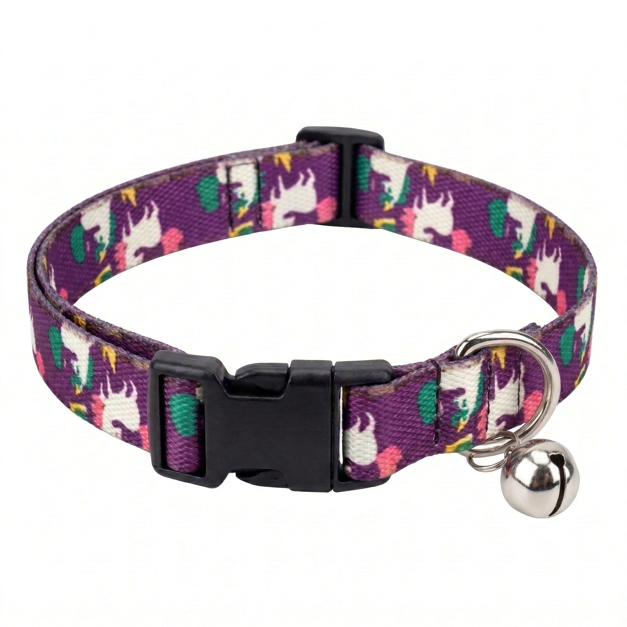 Kennel Adjustable Printed Puppy & Cat Collar with Click Buckle - Purple Unicorns Print