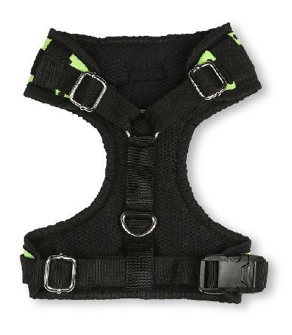 Constructed from lightweight, breathable polyester mesh with reinforced stitching at stress points. Features durable plastic quick-release buckles and rust-resistant metal D-ring for leash attachment. The mesh design promotes airflow, reducing heat buildup during use.