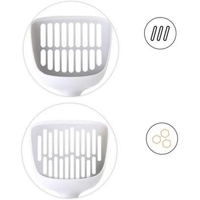 Usage Guidelines: Scoop waste and clumps from litter boxes allowing clean litter to fall through slots. Dispose collected waste appropriately and clean scooper after each use.