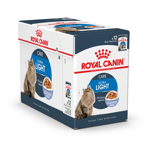 Royal Canin Ultra Light (Pouch) is a nutritionally balanced formula that is tailor-made to support adult cats with a tendency to gain weight by satisfying their hunger and helping to keep them lighter on their paws. It is formulated with a precise balance of vitamins and minerals to help maintain your cats lifelong wellbeing. This formula is enriched with L-Carnitine, a nutrient involved in healthy fat metabolism, while the adapted protein content supports your cats muscle mass for a healthier body weight.