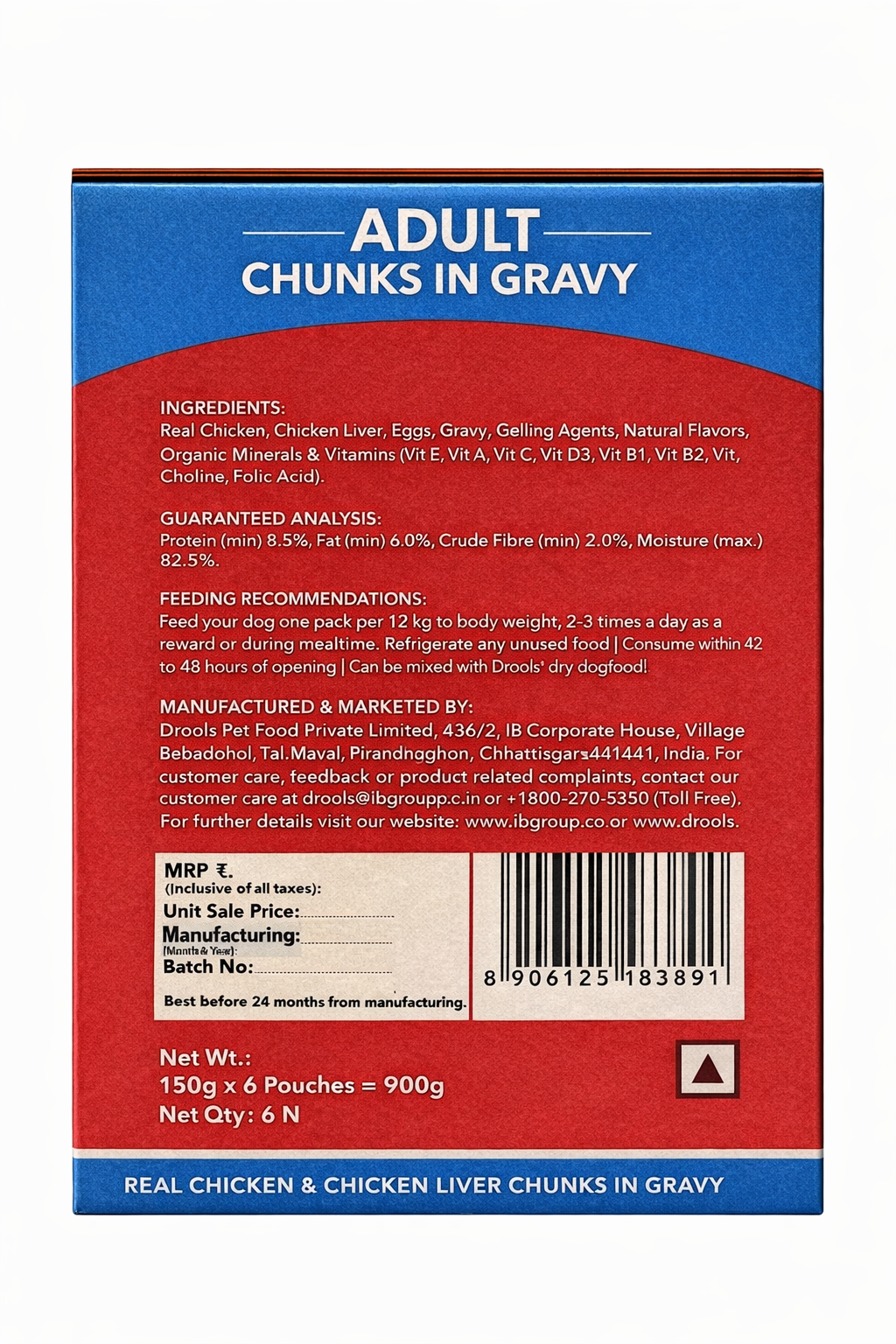 Drools Real Chicken and Chicken Liver Chunks in Gravy Adult Dog Food