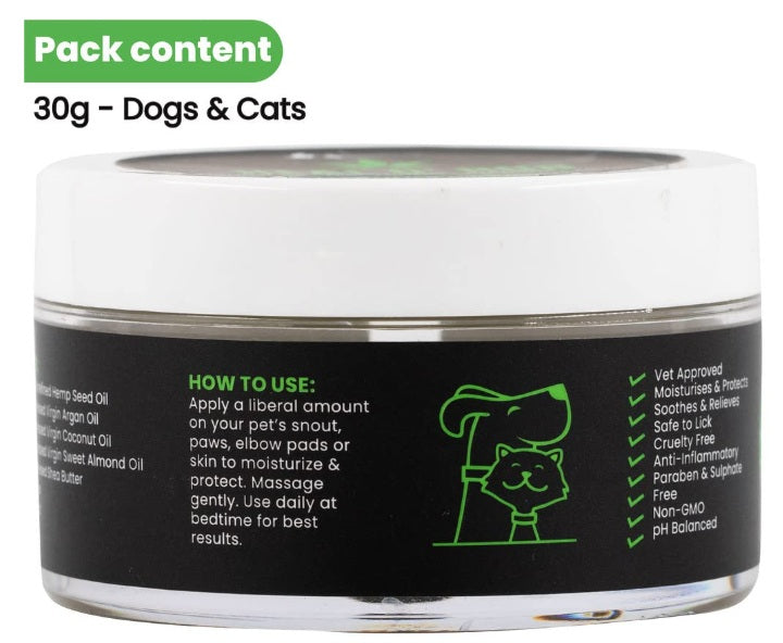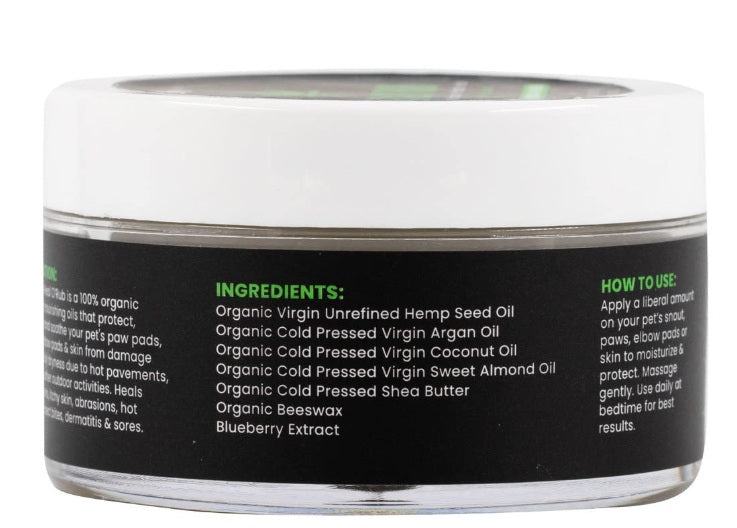 Usage: Apply liberal amounts to affected areas (paws, snout, elbow pads, dry skin). Massage gently to moisturize and protect. Use daily at bedtime for best results.