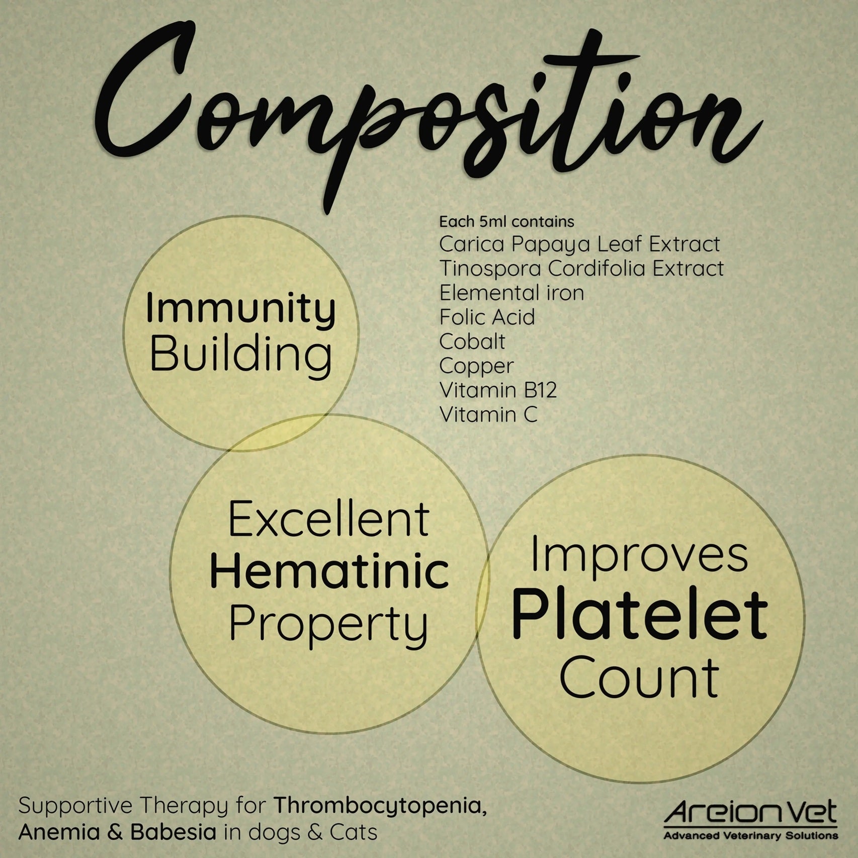 CariSyp is a premium liquid supplement specially formulated to provide comprehensive nutritional support for both dogs and cats. This 100ml syrup contains Carica Papaya leaf extract, scientifically enriched with essential vitamins, minerals, and Tinospora cordifolia to promote optimal health and vitality in your beloved pets.