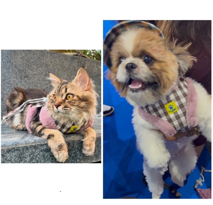 Give your pet unmatched comfort and style with the A+A Pets Fur Harness & Leash Set, designed specially for cats and small dogs. Crafted with soft faux fur lining and a secure adjustable fit, this harness keeps your pet warm, cozy, and safe during walks. Its checkered outer design adds a stylish touch while the plush inner padding ensures gentle support on the chest and body.