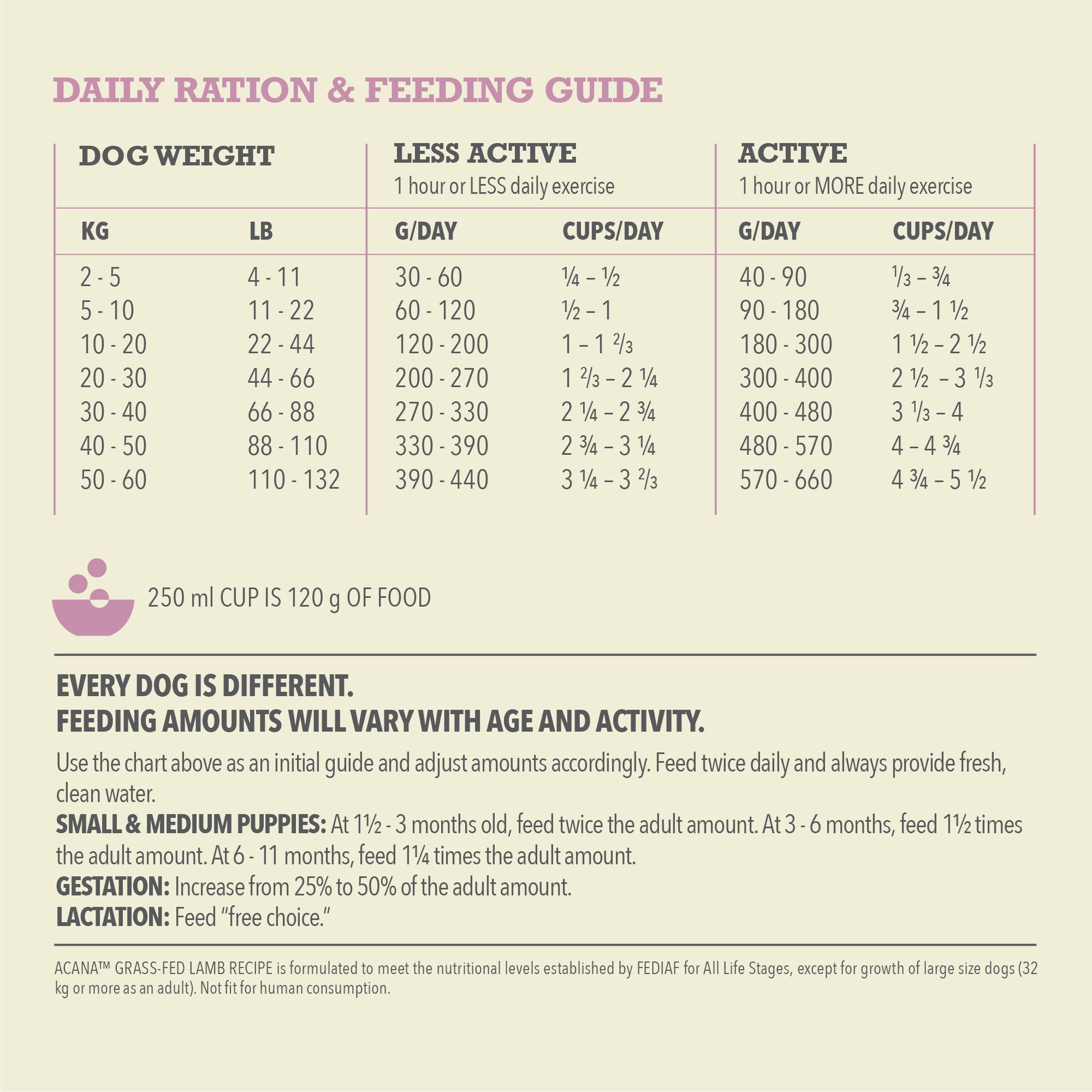 In premium ACANA recipes, every ingredient matters. That’s why our ACANA Singles Limited Ingredient Diet Recipes are thoughtfully crafted with protein from a single animal source*, making them perfect for picky pups or dogs with food sensitivities! Our Grass-Fed Lamb Recipe includes 50% protein-rich lamb ingredients** balanced with 50% vegetables, fruit and nutrients*** like nutritious apples, and no grain ingredients****. It also includes no artificial preservatives, flavours or colours added in our kitchen. This recipe helps support 3 key health benefits for your dog, including healthy skin & coat, healthy digestion and ideal body condition. It helps your dog feel so good on the inside, you’ll see it on the outside!