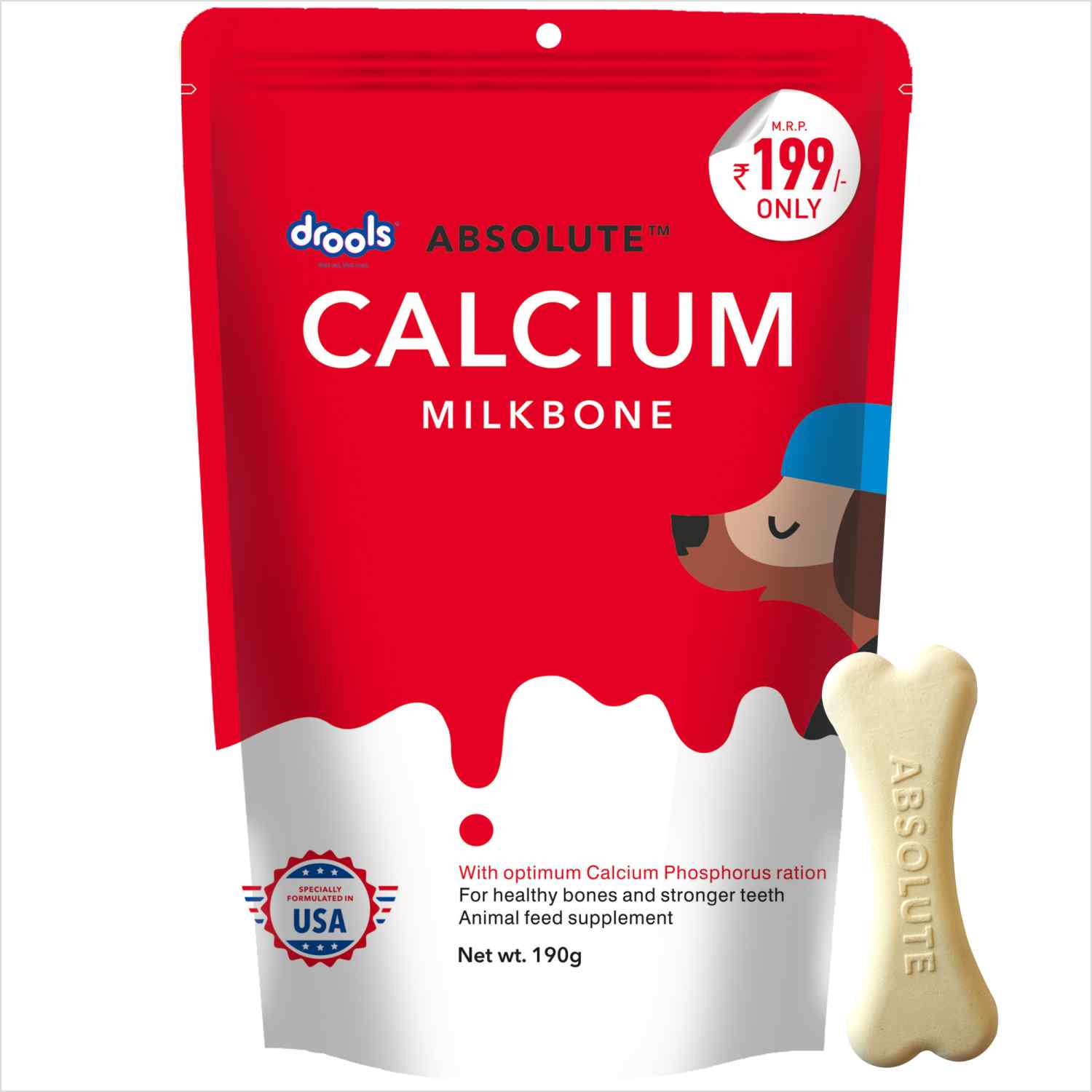 Drools Absolute Calcium Milk Bones – Bone Shaped Dog Treats Keep your dog's bones strong and teeth healthy with our scientifically formulated milk bones. Perfect for daily feeding, these bone-shaped treats deliver essential nutrients in every bite.