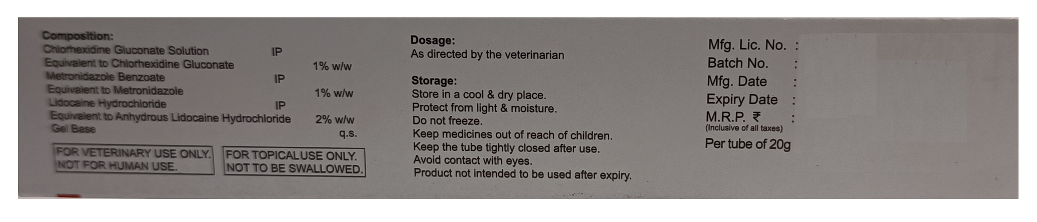 - Pack Size: 20g per tube