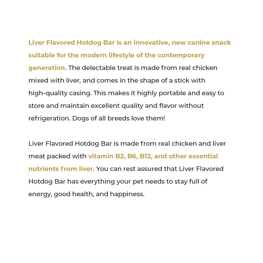 Perfect for: Complete daily nutrition, meal replacement, training rewards, premium treats, immune support, balanced diet. Premium chicken meat and liver hot dog bars with restaurant-quality standards for dogs who deserve complete and balanced nutrition in convenient semi-moist format for feeding and treating