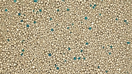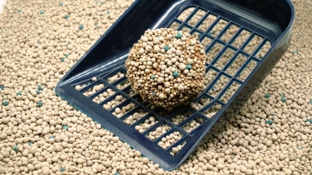 - Brown ball-shaped pellets - premium bentonite cat litter with enhanced absorption