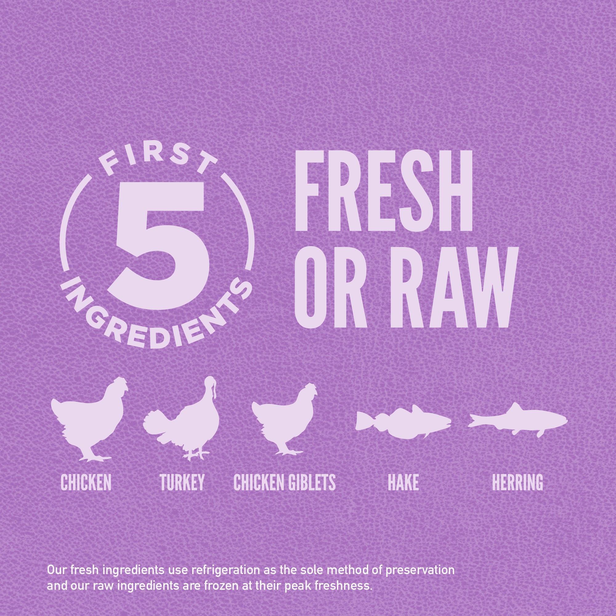 •The first 5 ingredients are fresh or raw** poultry and fish ingredients.