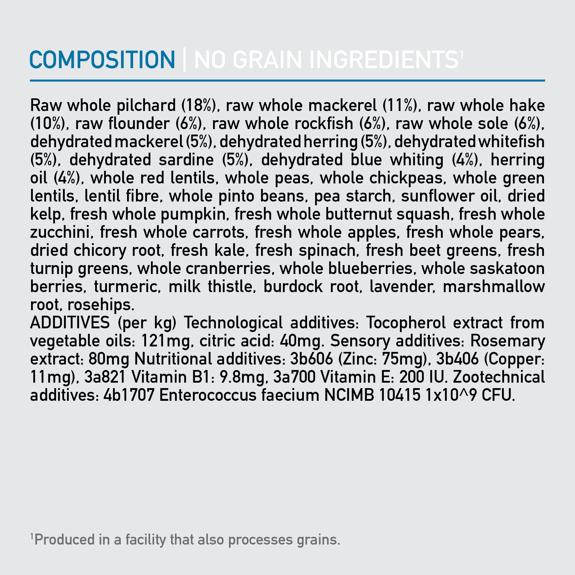 ORIJEN Six Fish diet is made with a variety of succulent fish including raw* wild-caught pilchard, mackerel, hake, flounder, rockfish and sole.
