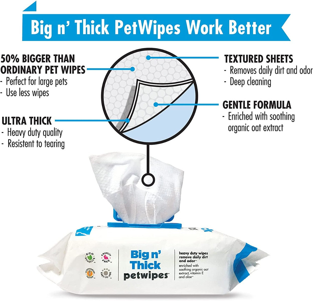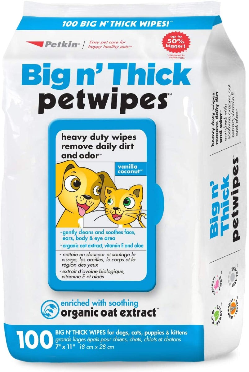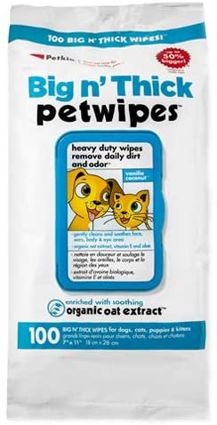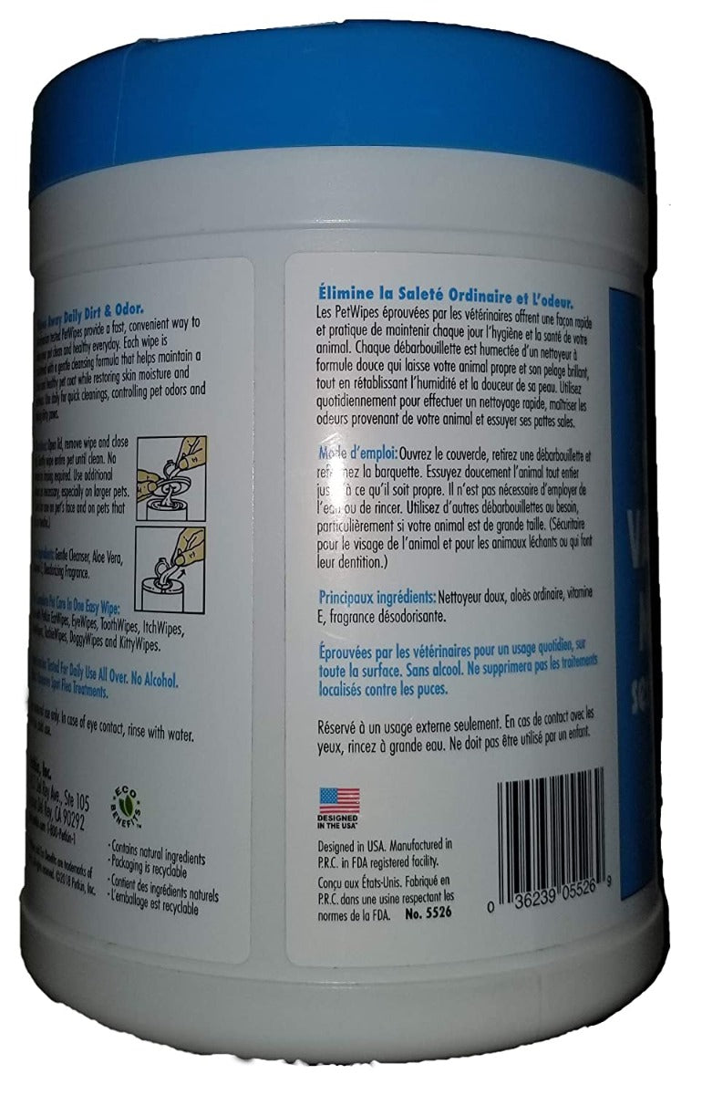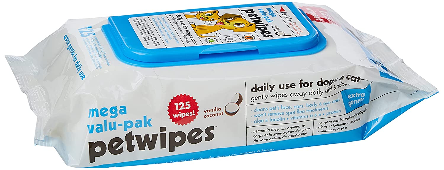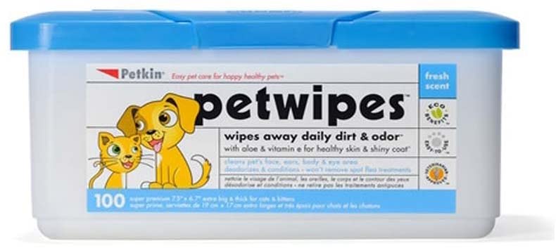 - Each pet wipe is moistened with a natural cleansing formula with Vitamin E and Aloe Vera that helps maintain a clean and healthy pet coat while restoring skin moisture and softness.