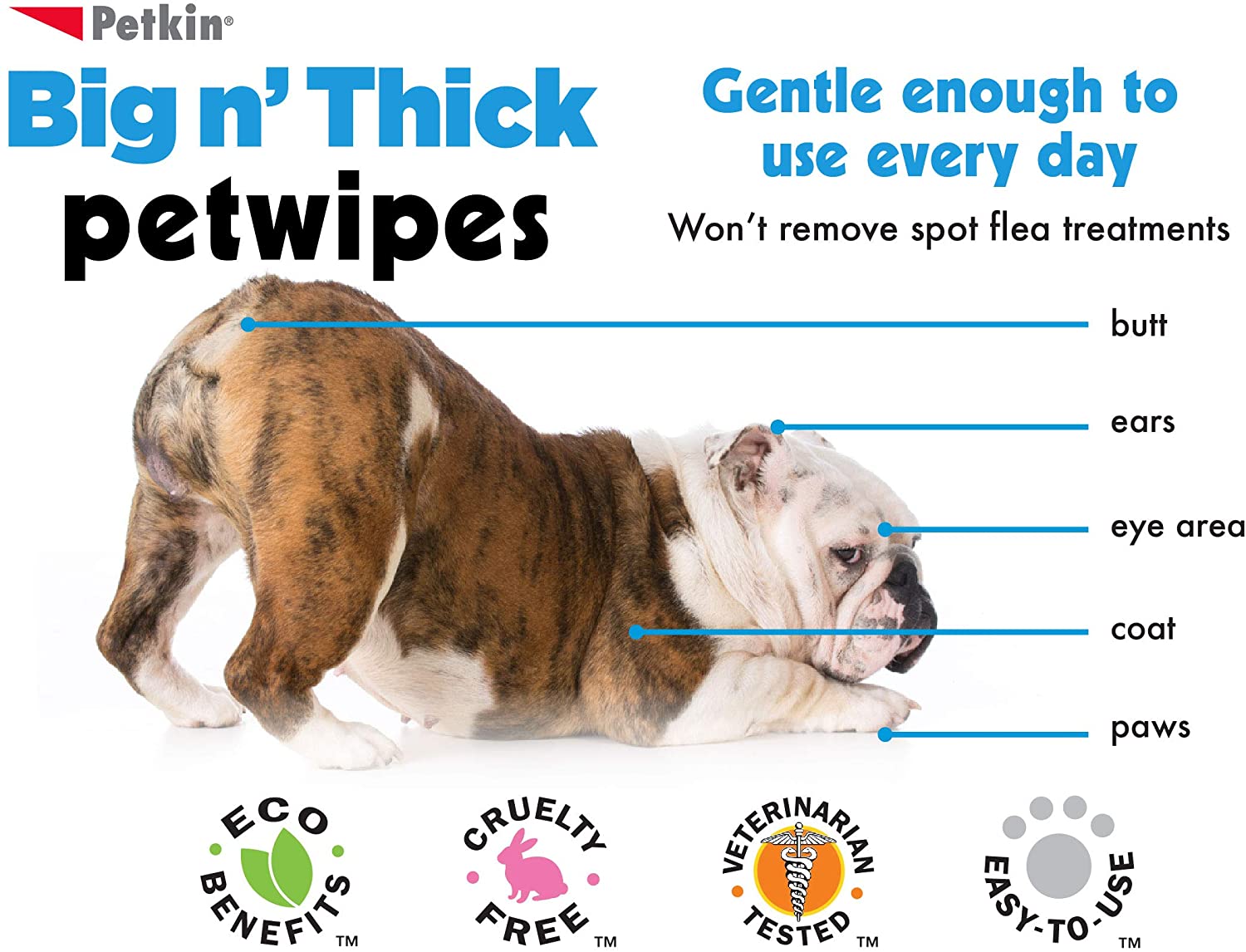 - Cleans your pet's face, ears, body and around the eyes.