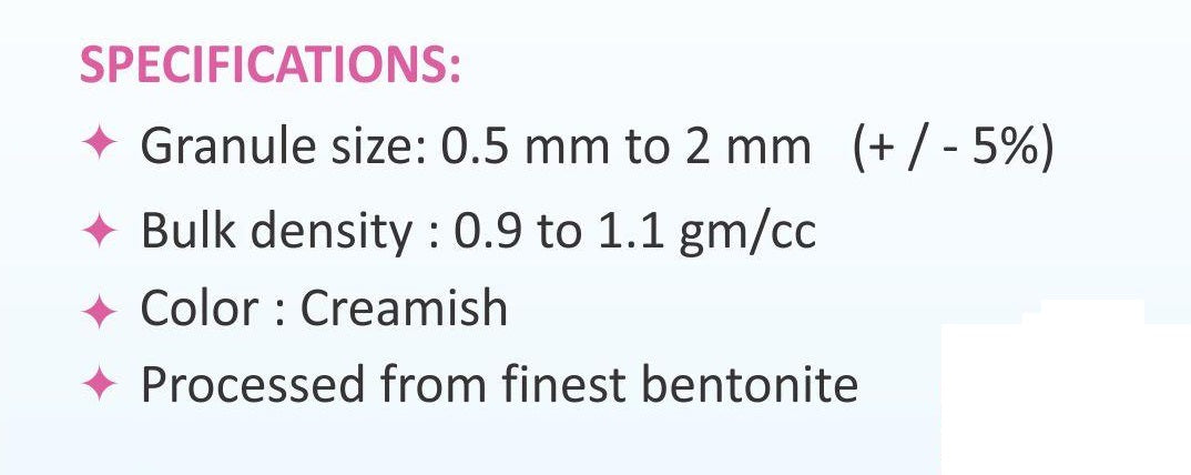 - Natural sodium bentonite clay - processed from selected argil for maximum performance