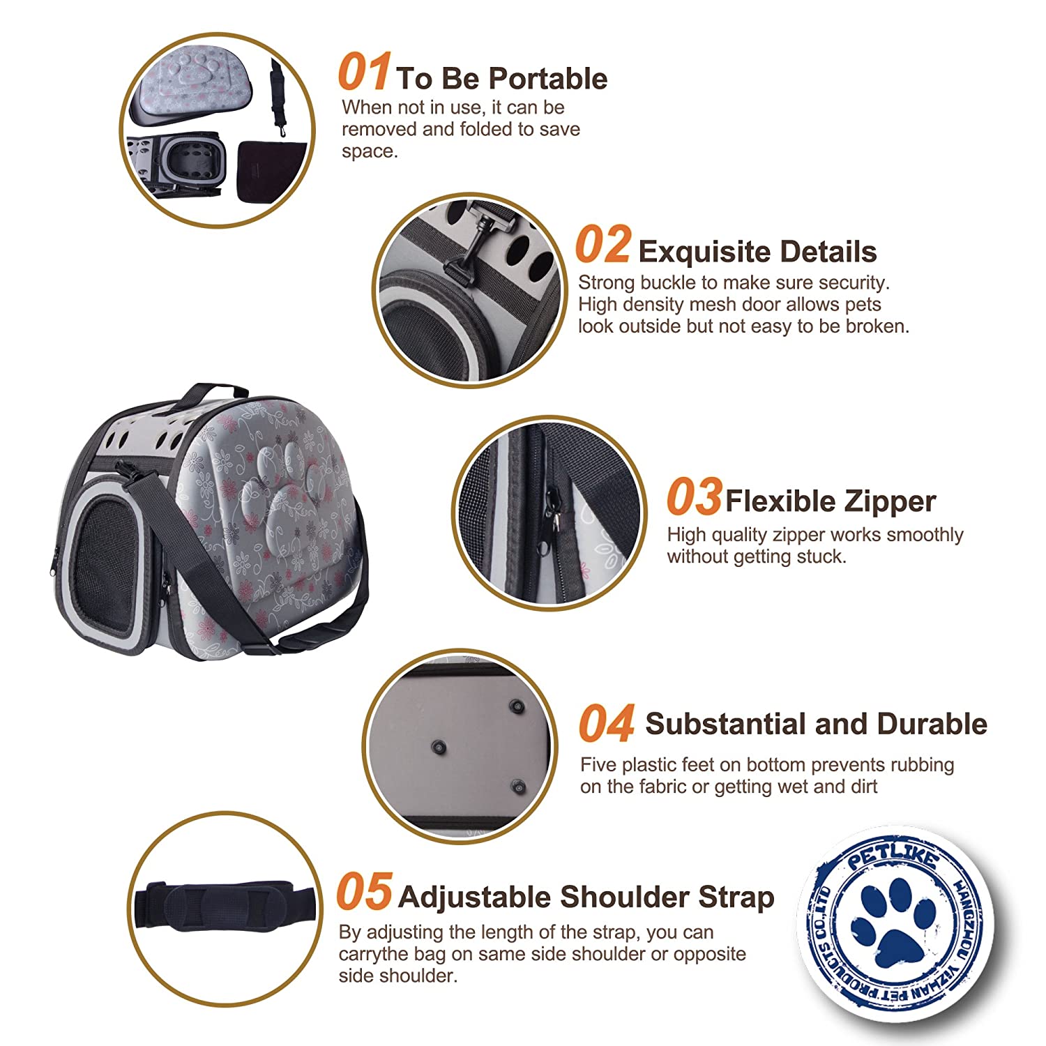 Smarty Pet Foldable Foam Pet Carry Bag Travel Shoulder Handbag