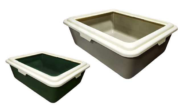 Smarty Pet Open Top Cat Litter Tray with Rim is a Durable plastic litter tray with raised rim for enhanced containment. Available in two sizes with elevated border design for easy cleaning and litter control.
