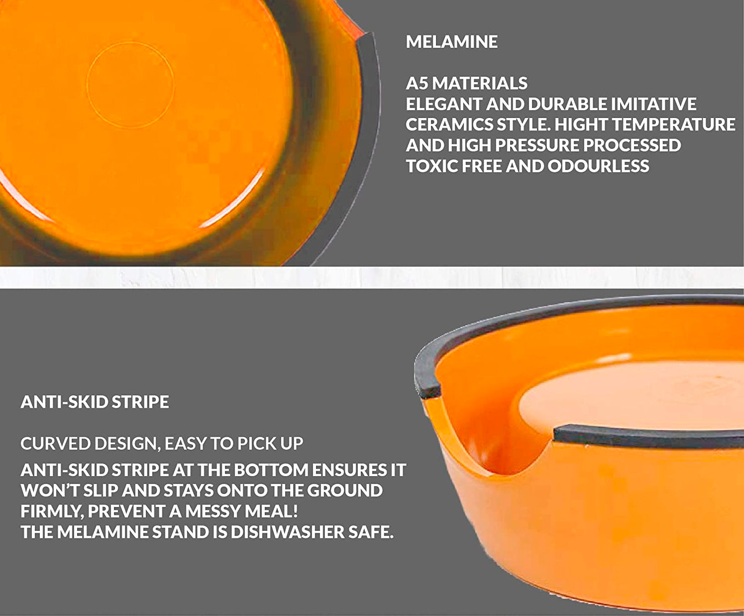 - Comes with a sturdy melamine stand and a removable stainless steel bowl.