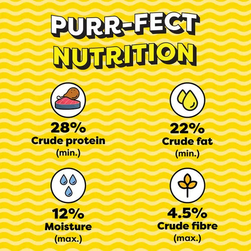 Formulated with the goodness of protein and enriched with vitamins and minerals, these treats come in a Stay Fresh resealable pouch to maintain crunchiness and flavor. Just shake the bag and your cat will come running!