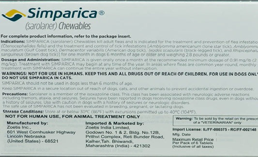 Simparica (Sarolaner) 40 mg is a veterinary-approved monthly chewable tablet that provides fast-acting flea and tick protection for dogs. This liver-flavored medication kills fleas within hours and controls five types of disease-carrying ticks for up to 30 days.