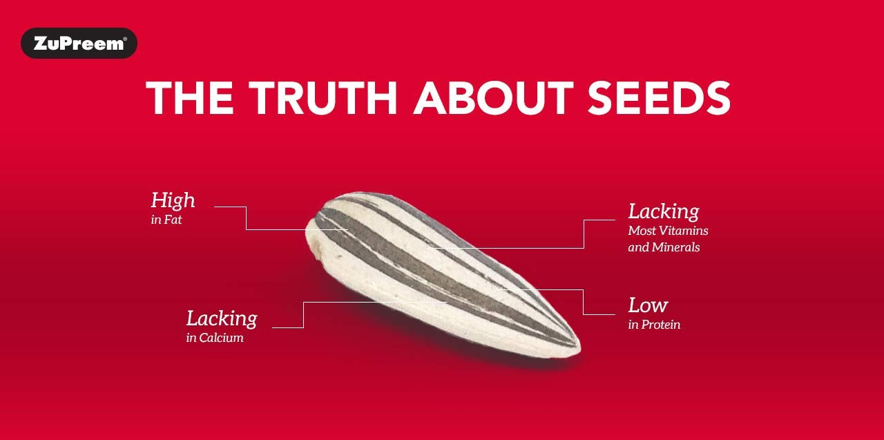 Feeding Guidelines: Offer as primary diet, replacing 75-80% of seeds. Provide fresh portions daily and remove uneaten food after 24 hours. Supplement with fresh fruits and vegetables.