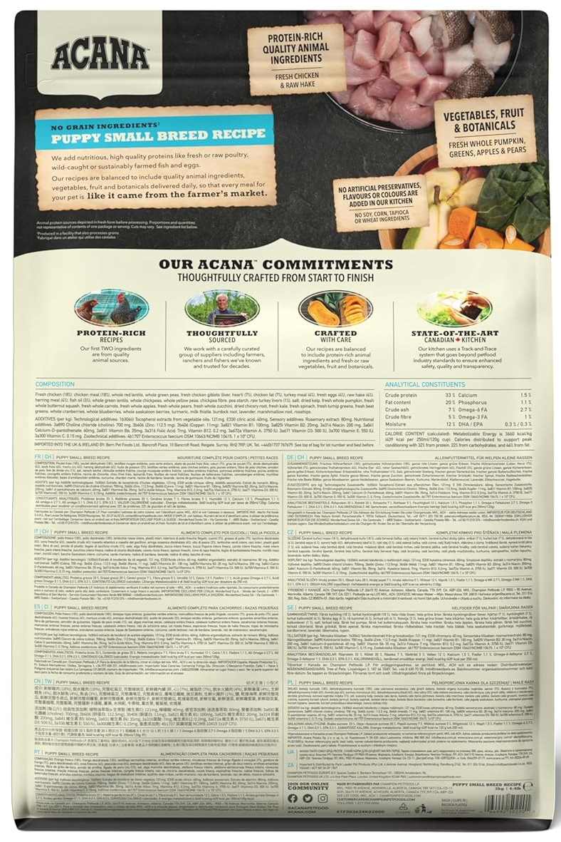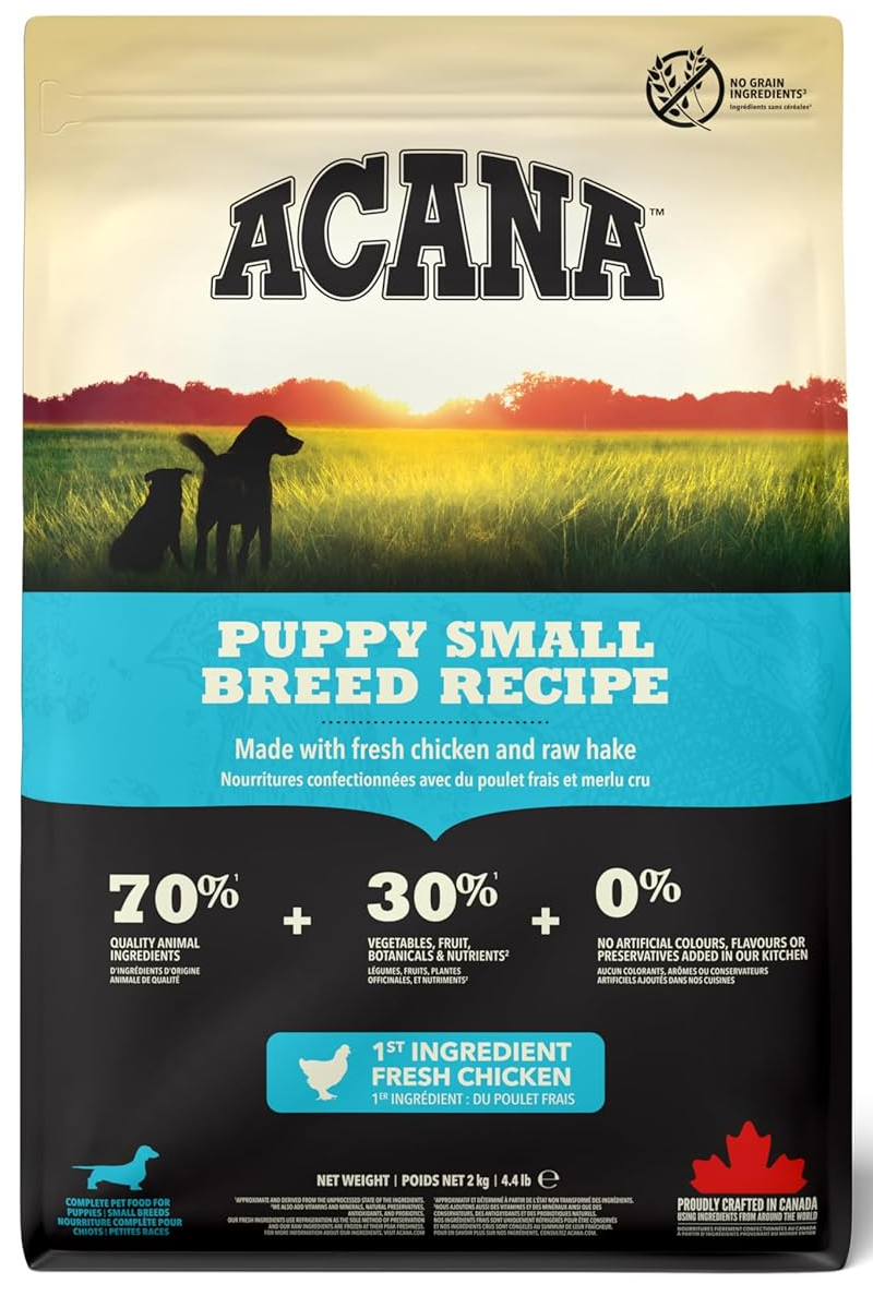 Acana Puppy Small Breed is a 85% meat-packed, grain-free kibble bursting with free-run chicken, wild flounder & whole nest-laid eggs – exactly what Mother Nature designed for tiny tornadoes under 9 kg. Each pea-sized piece delivers explosive growth fuel, zero fillers, and a taste that turns fussy Chihuahuas into bowl-vacuuming champs.