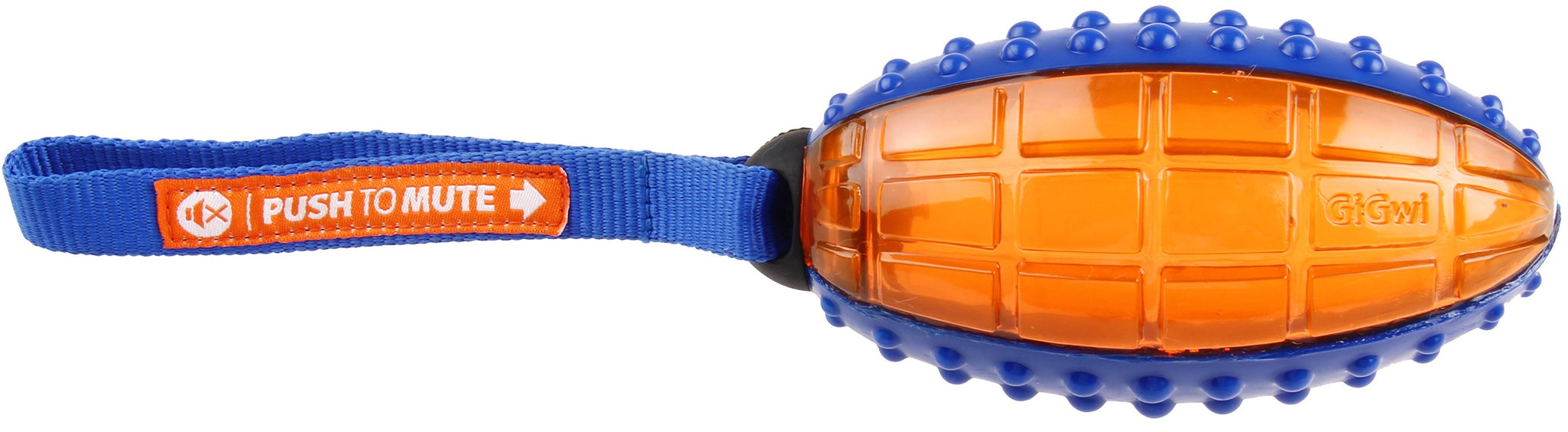 GiGwi Push To Mute Rugby Ball Dog Toy | Noise-Control Squeaky Fetch & Tug Toy – Blue & Orange
