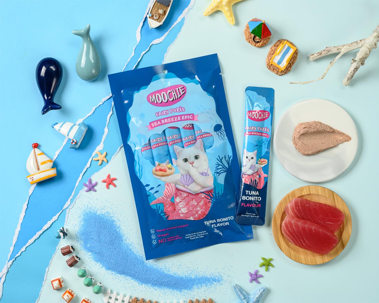 Perfect for: Cat treats, meal toppers, training rewards, seafood nutrition, all cat ages and breeds. Premium purée sachets with natural tuna bonito for sea breeze epic treat time experience.