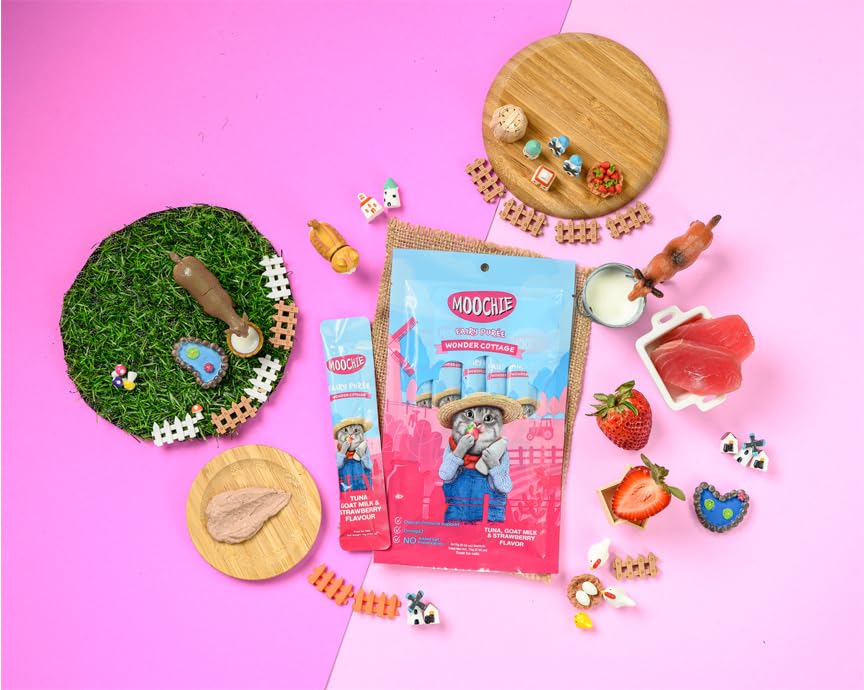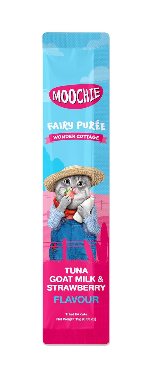 Perfect for: Cat treats, meal toppers, training rewards, unique flavor experience, all cat ages and breeds. Premium purée sachets with natural tuna, goat milk and strawberry for a wonderful cottage treat time experience.